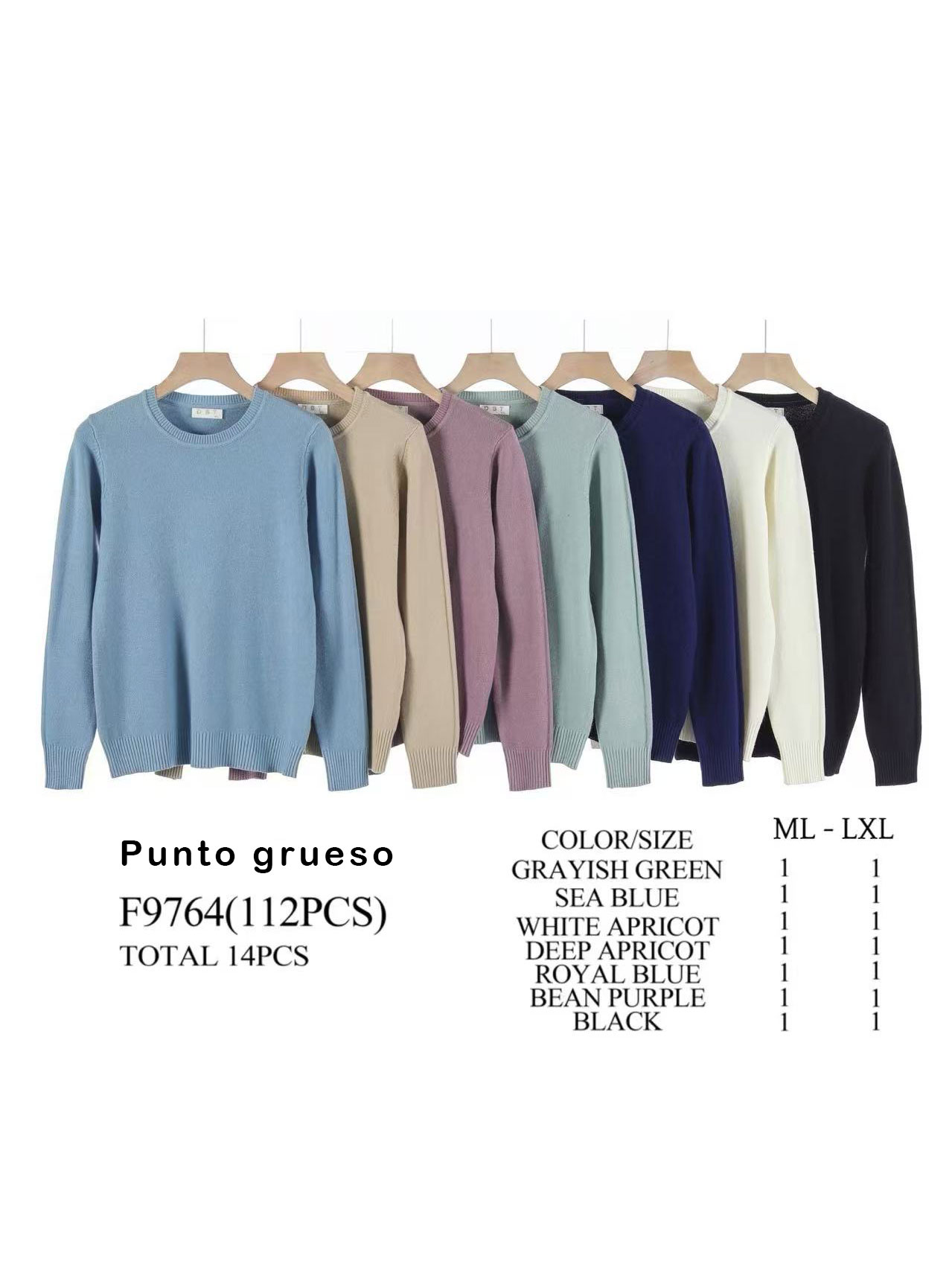 Detalles de jersey básico punto grueso cuello redondo DB-F9764