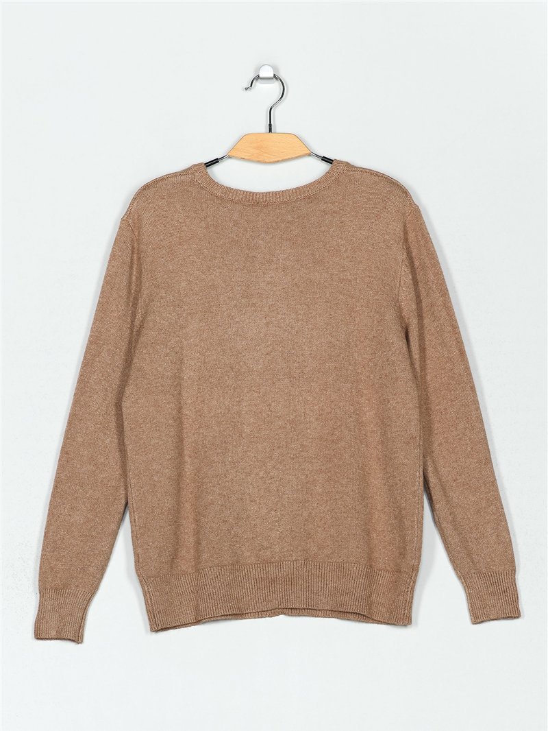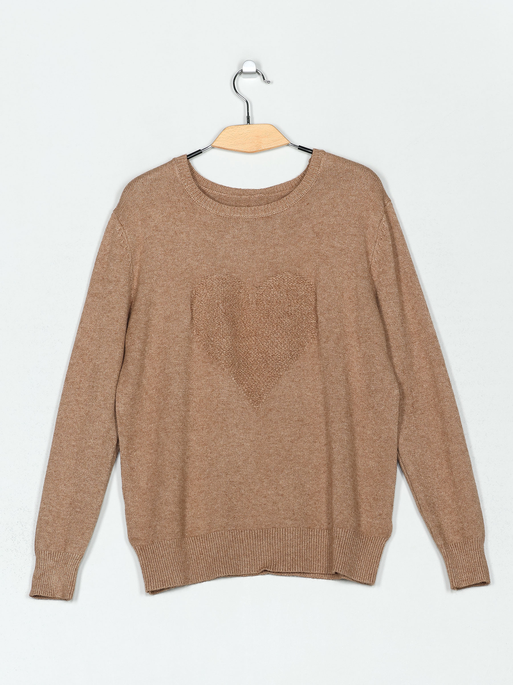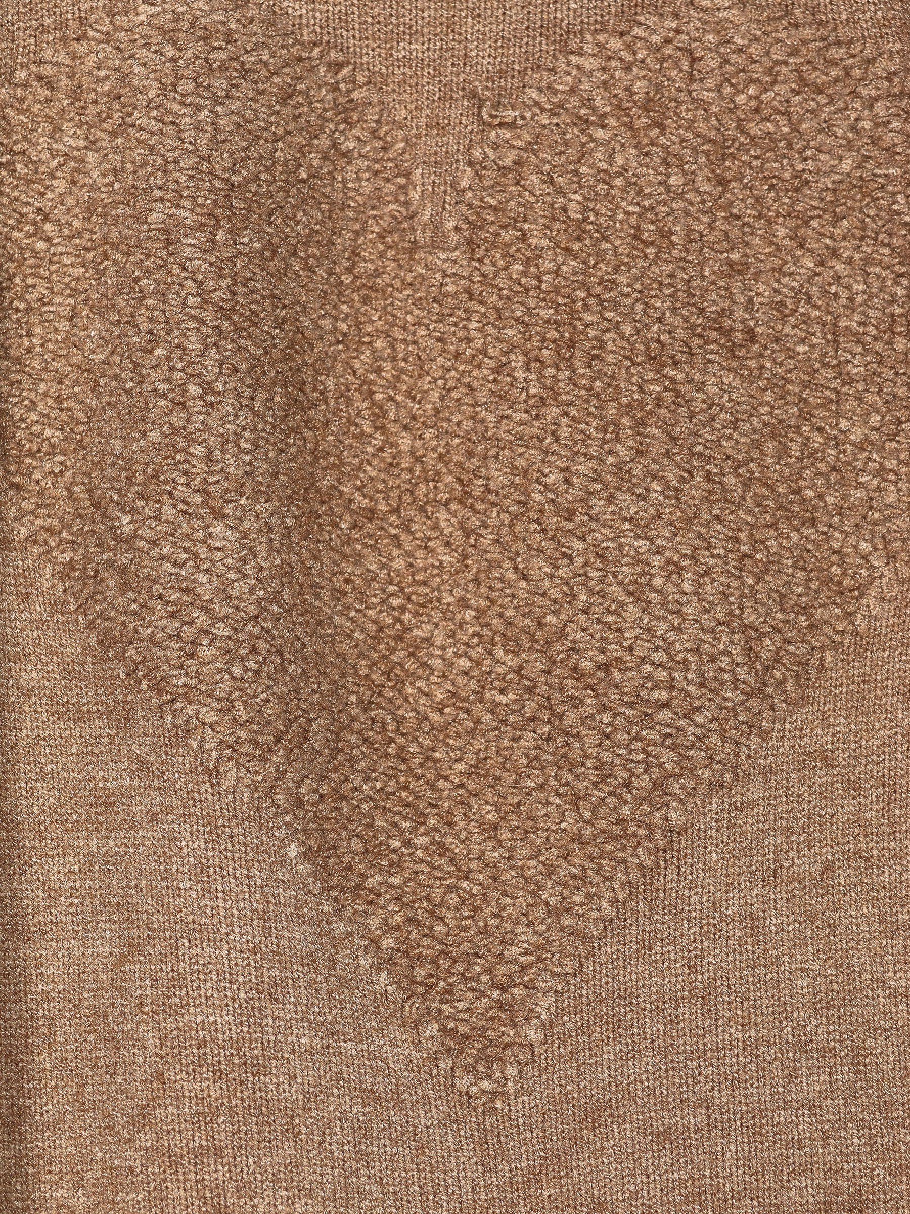 Jersey corazón de borreguito. Acabados en rib. Cuello redondo. Manga larga.