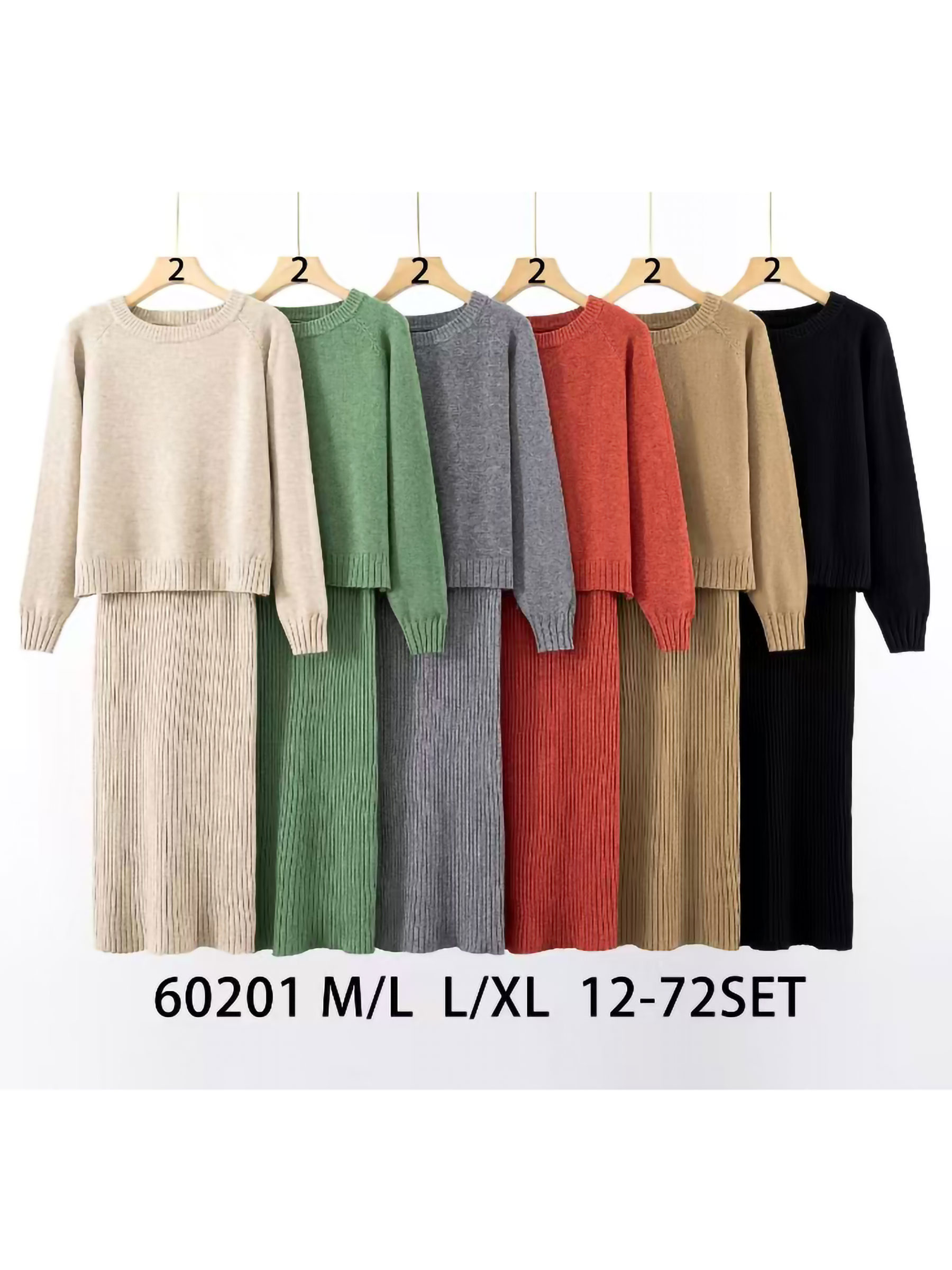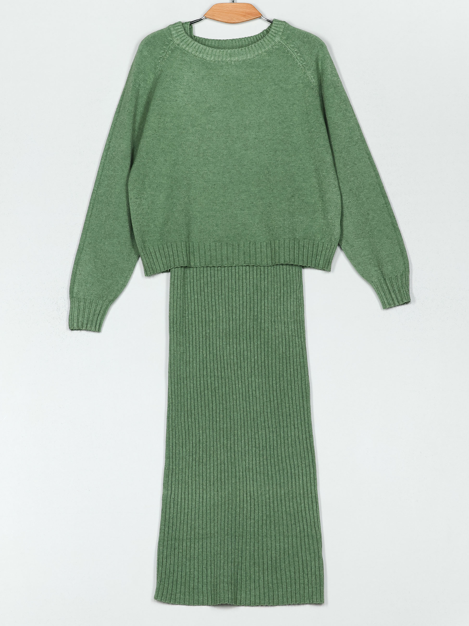 Detalles de conjunto jersey soft + vestido largo canalé MF-60201