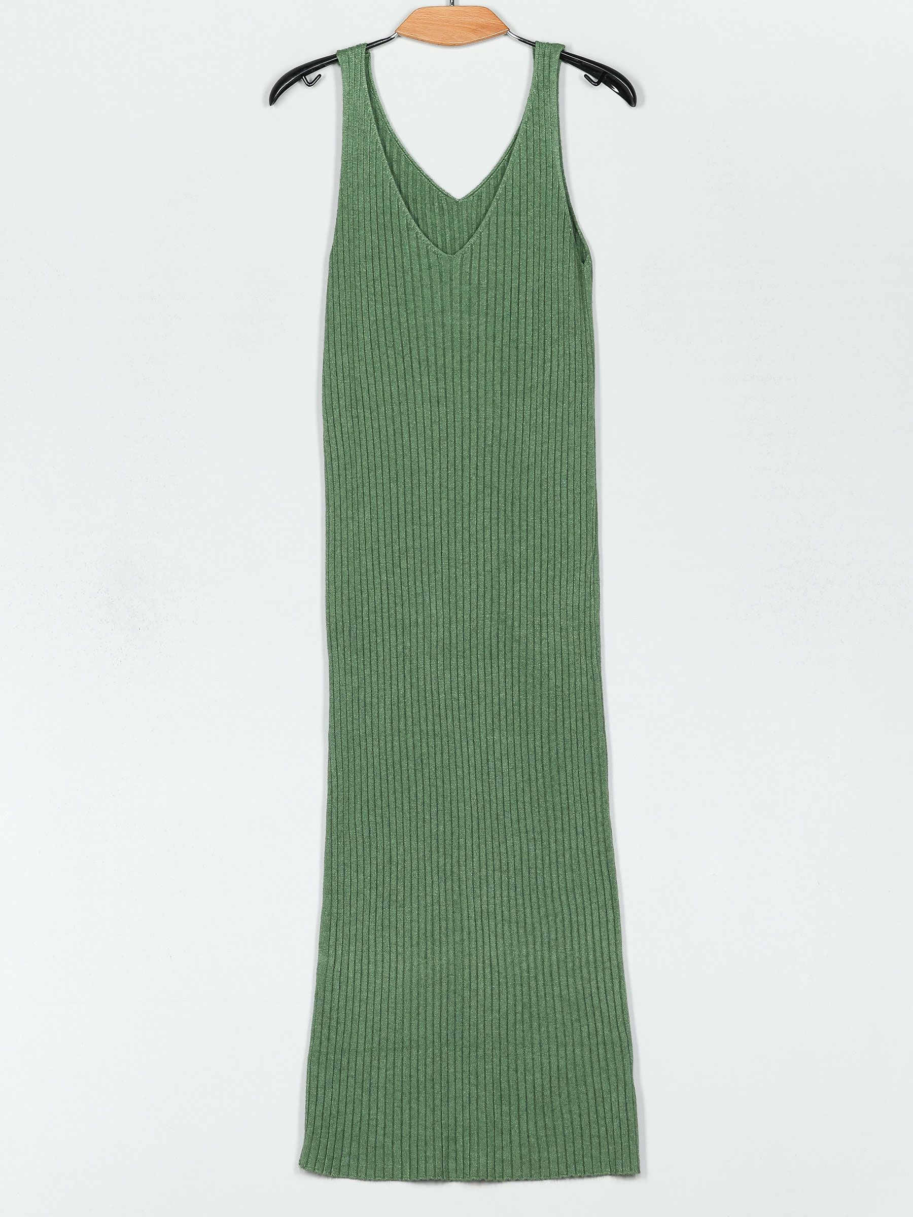 Vestido largo canalé. Cuello pico. Tirante ancho.