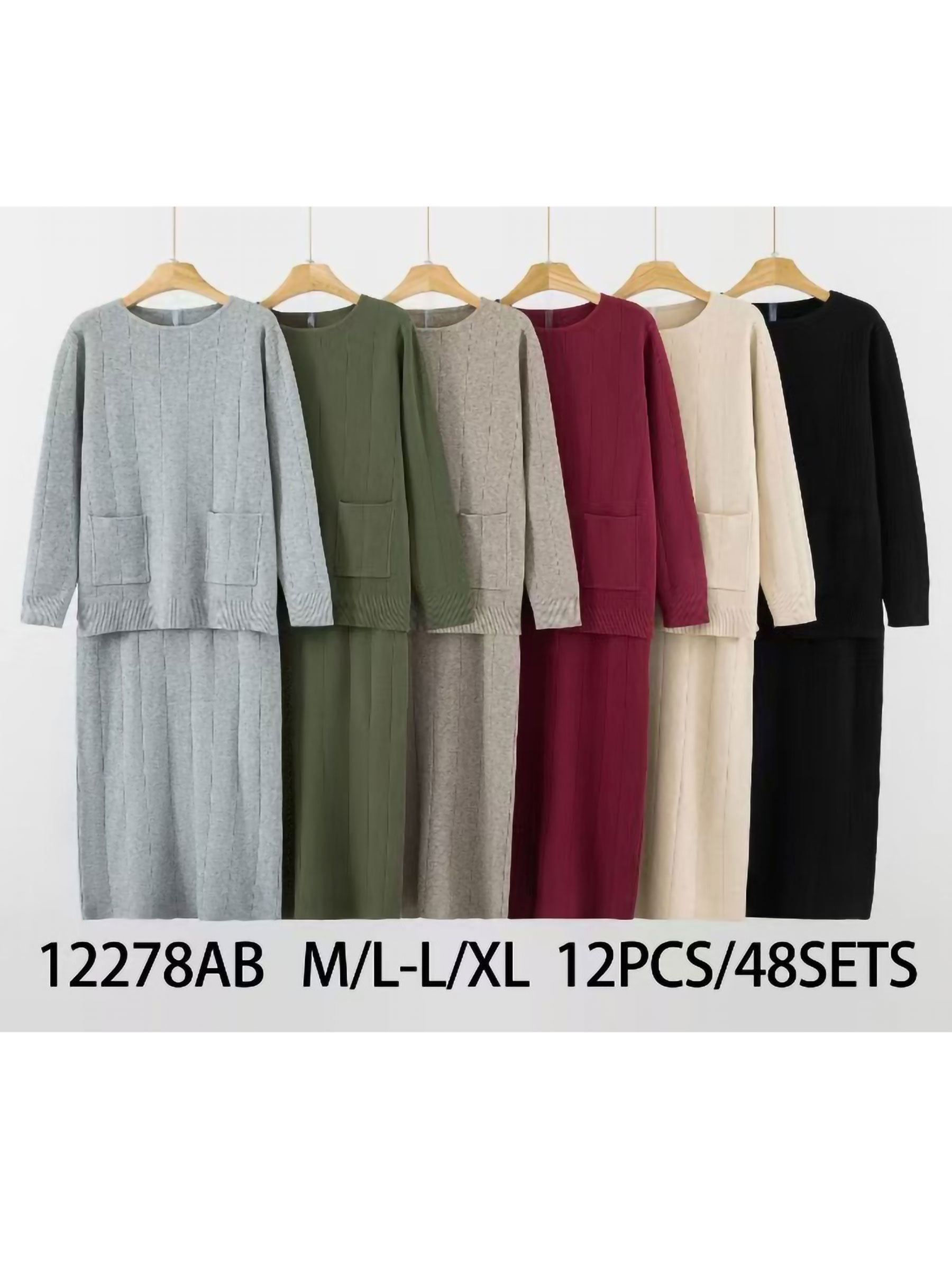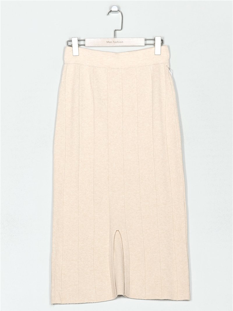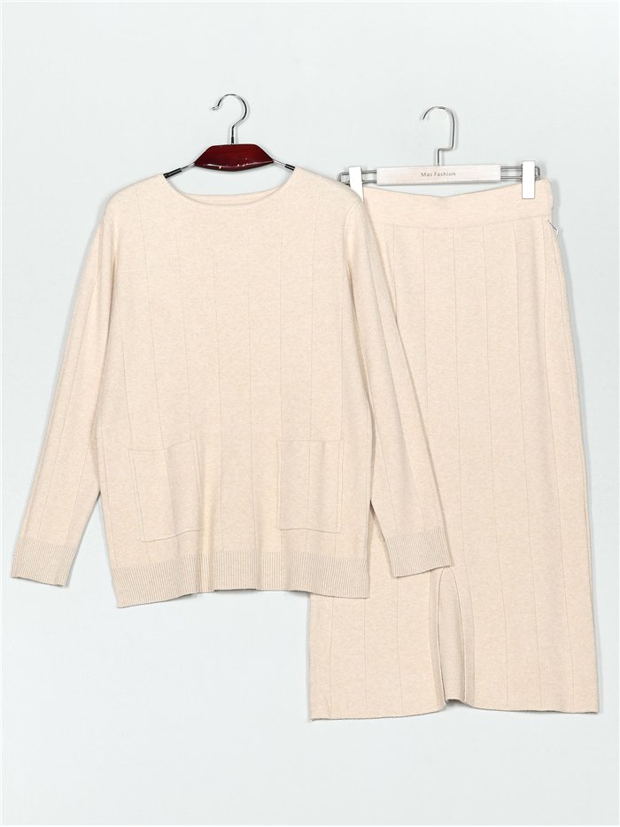 Detalles de conjunto jersey canalé punto cálido + falda midi MF-12278AB