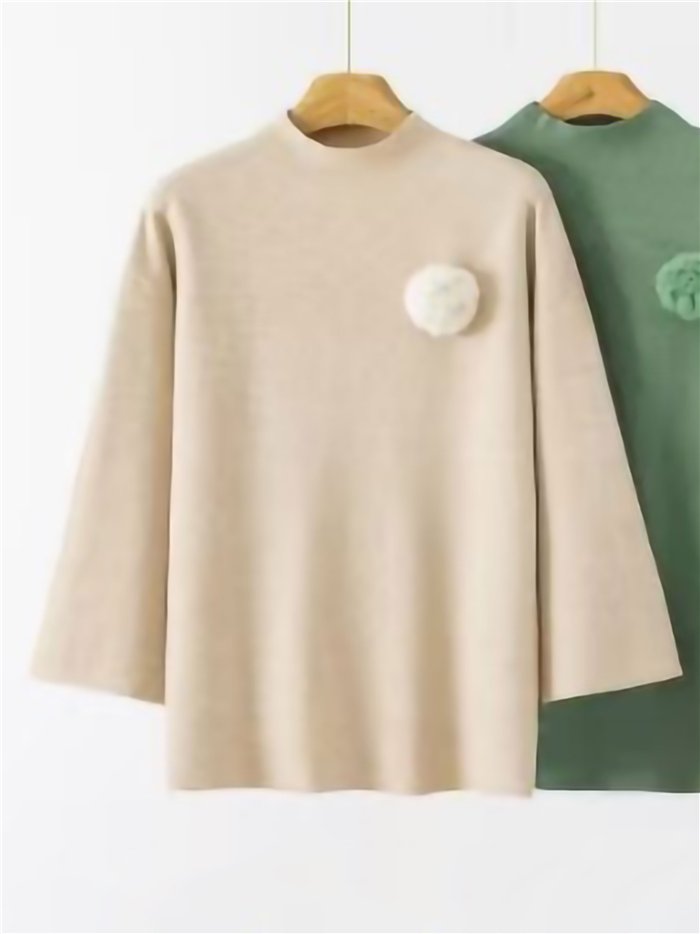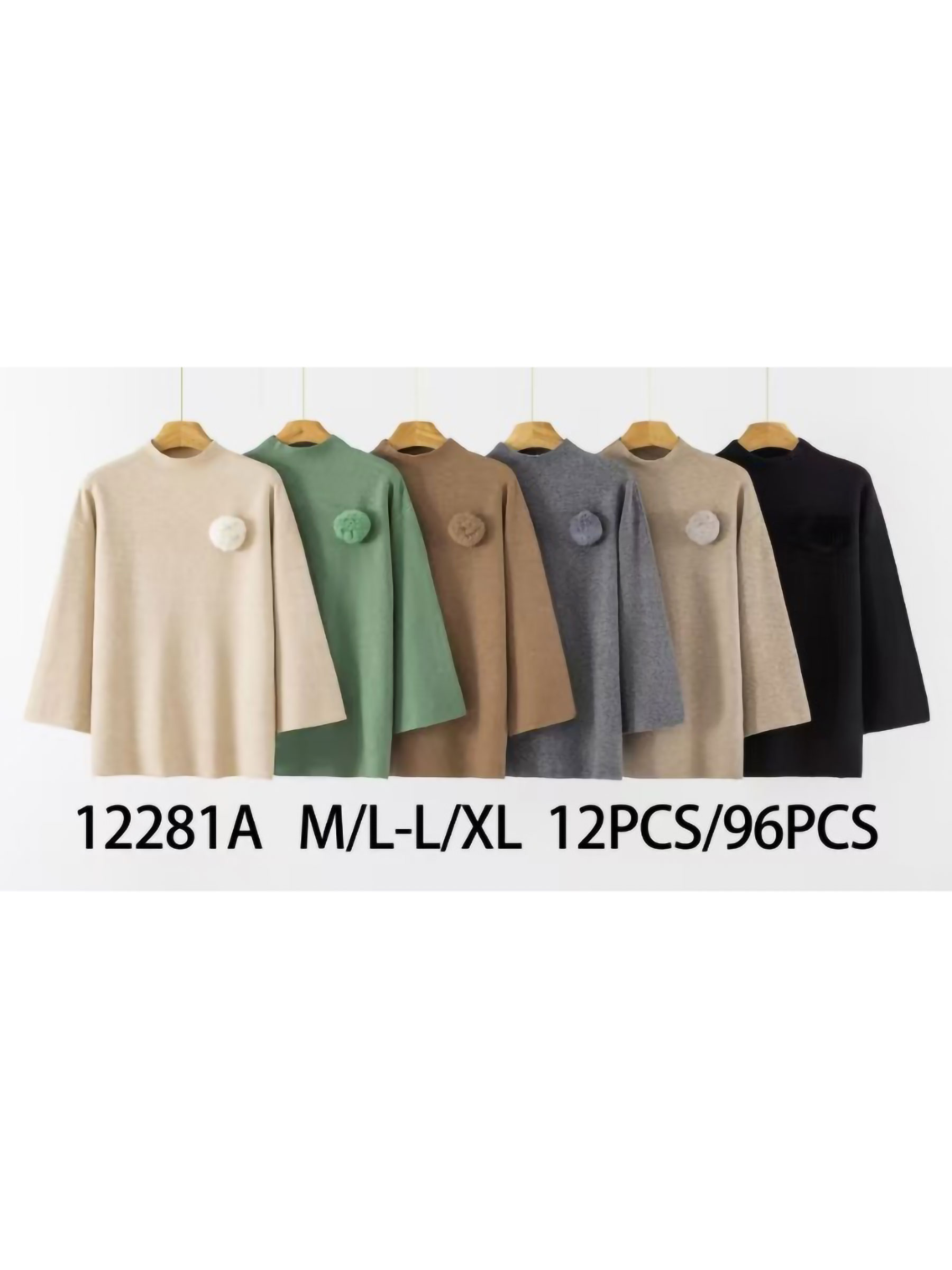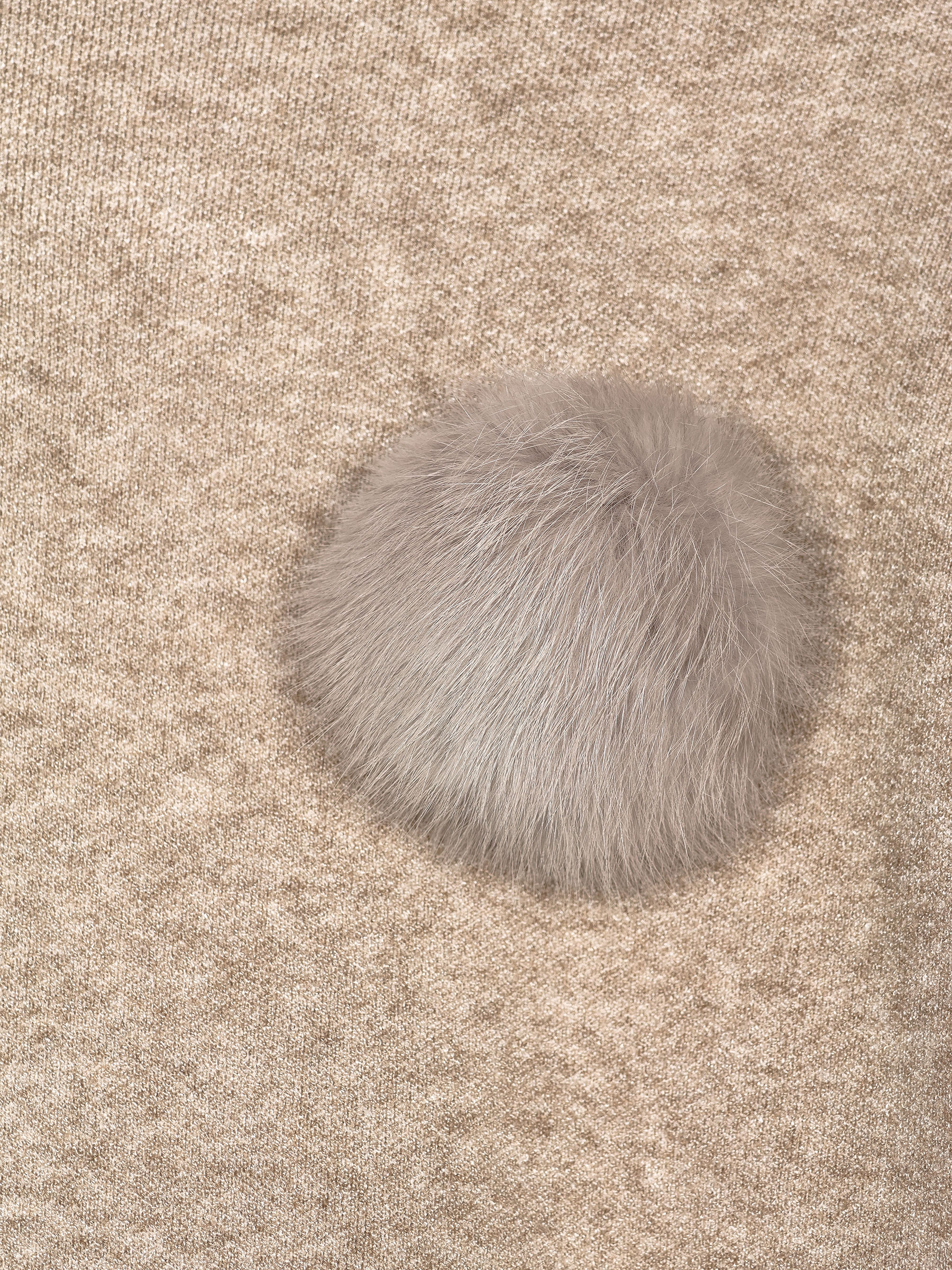 Jersey de punto. Detalle pompones. Acabados en rib. Cuello redondo. Manga larga.