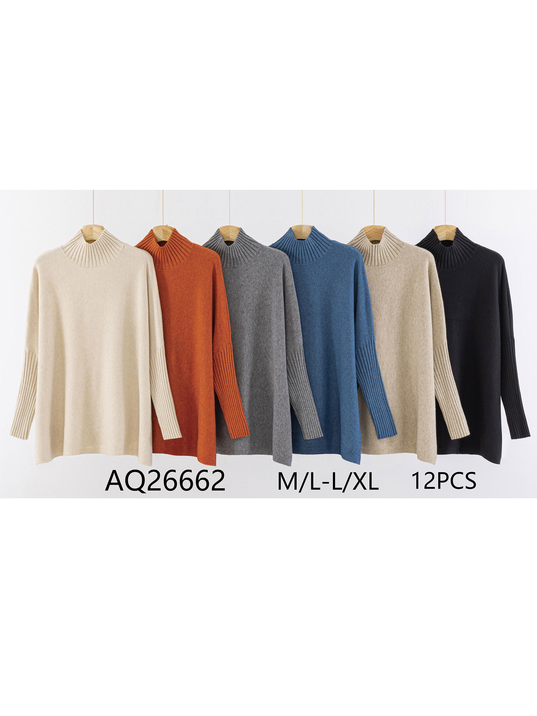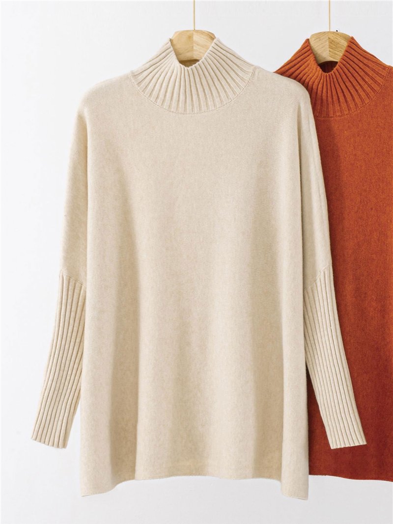 Jersey maxi de punto tacto suave. Cuello perkins. Manga larga.
