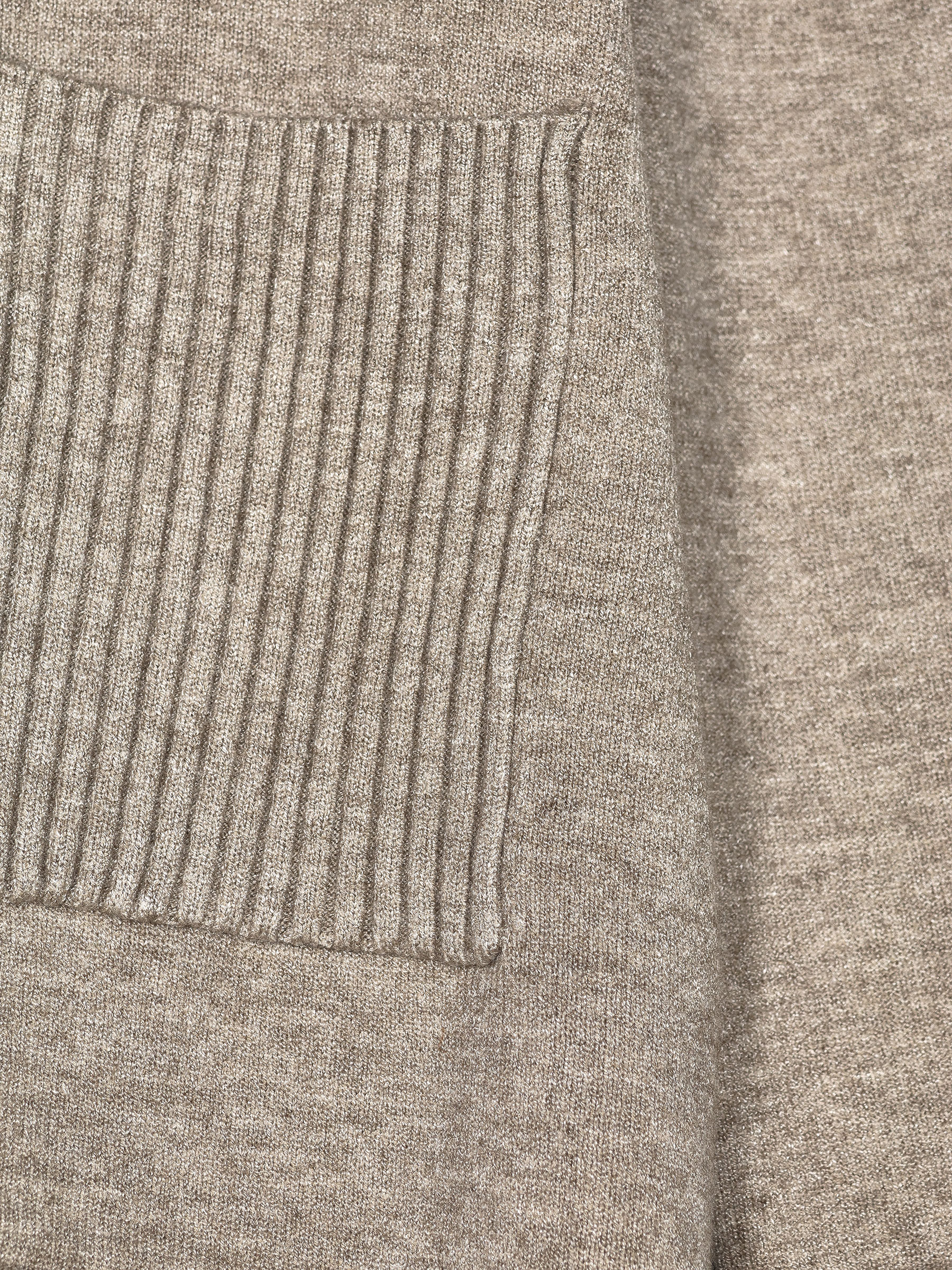 Jersey de punto soft. Cuello vuelto. Bolsillos delanteros de plastrón. Manga larga.
