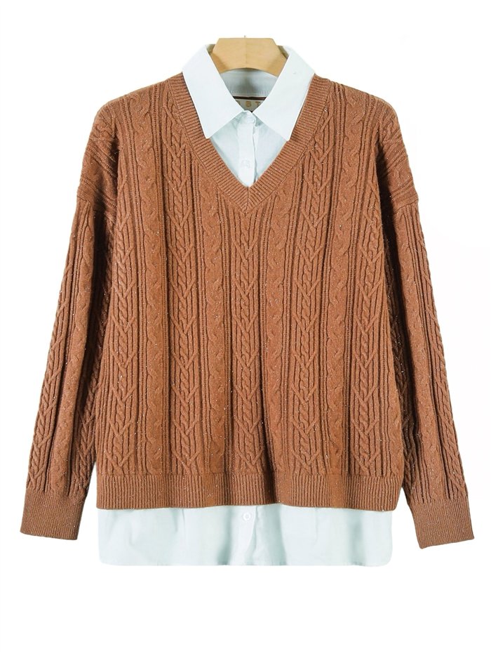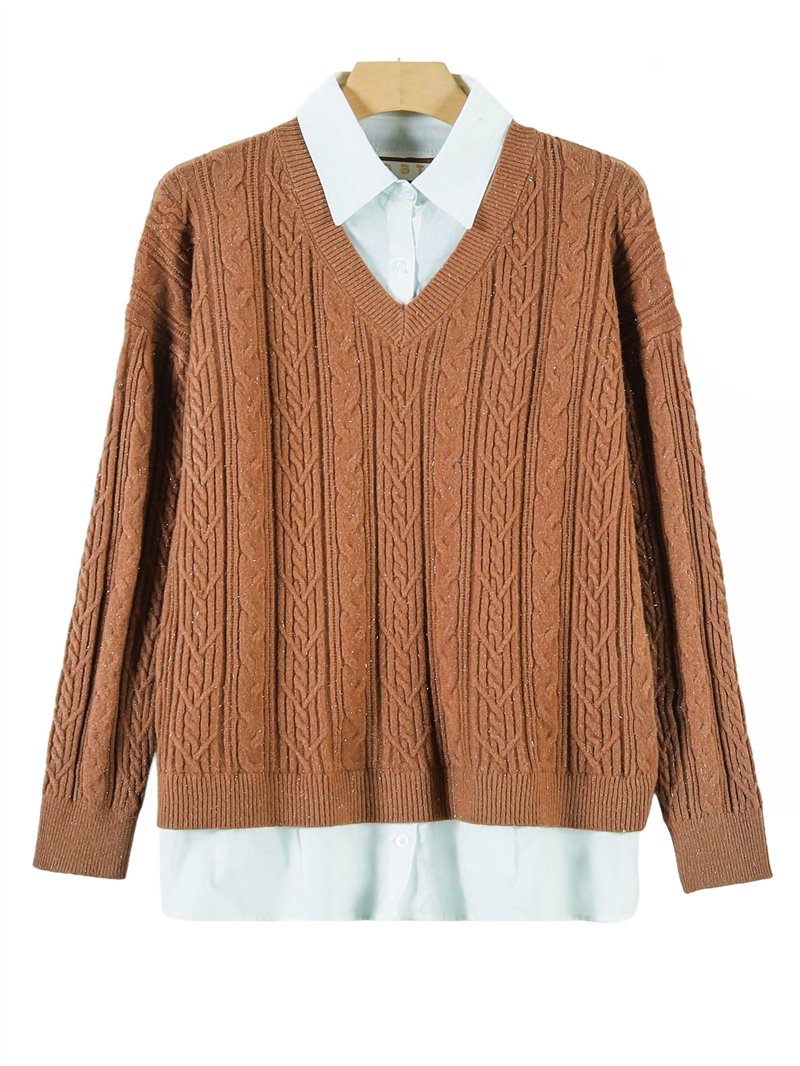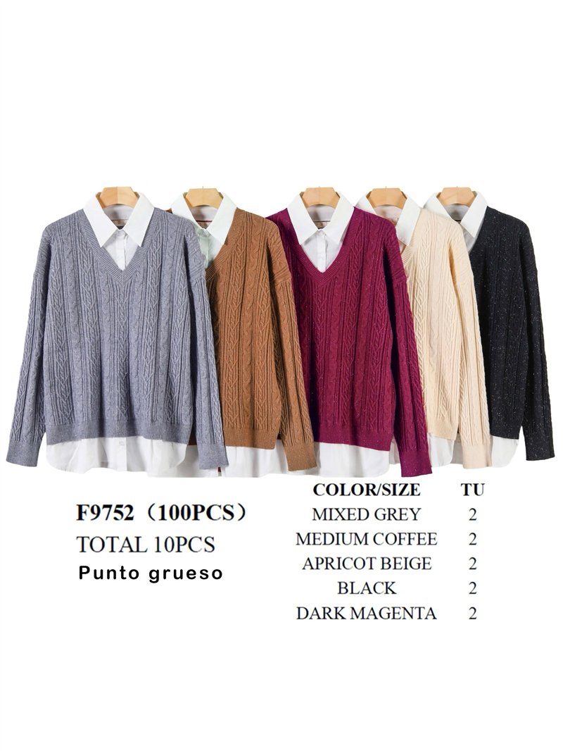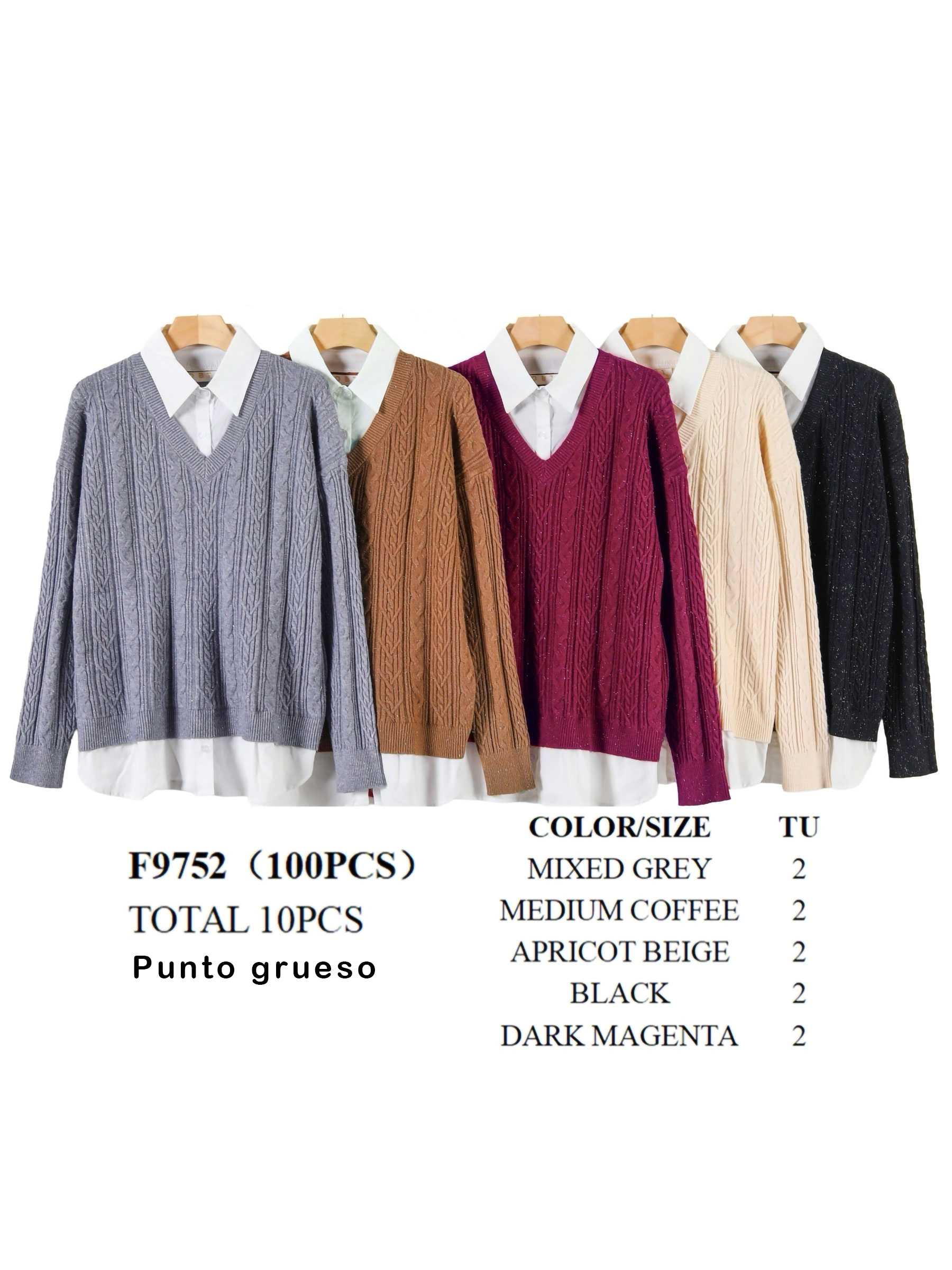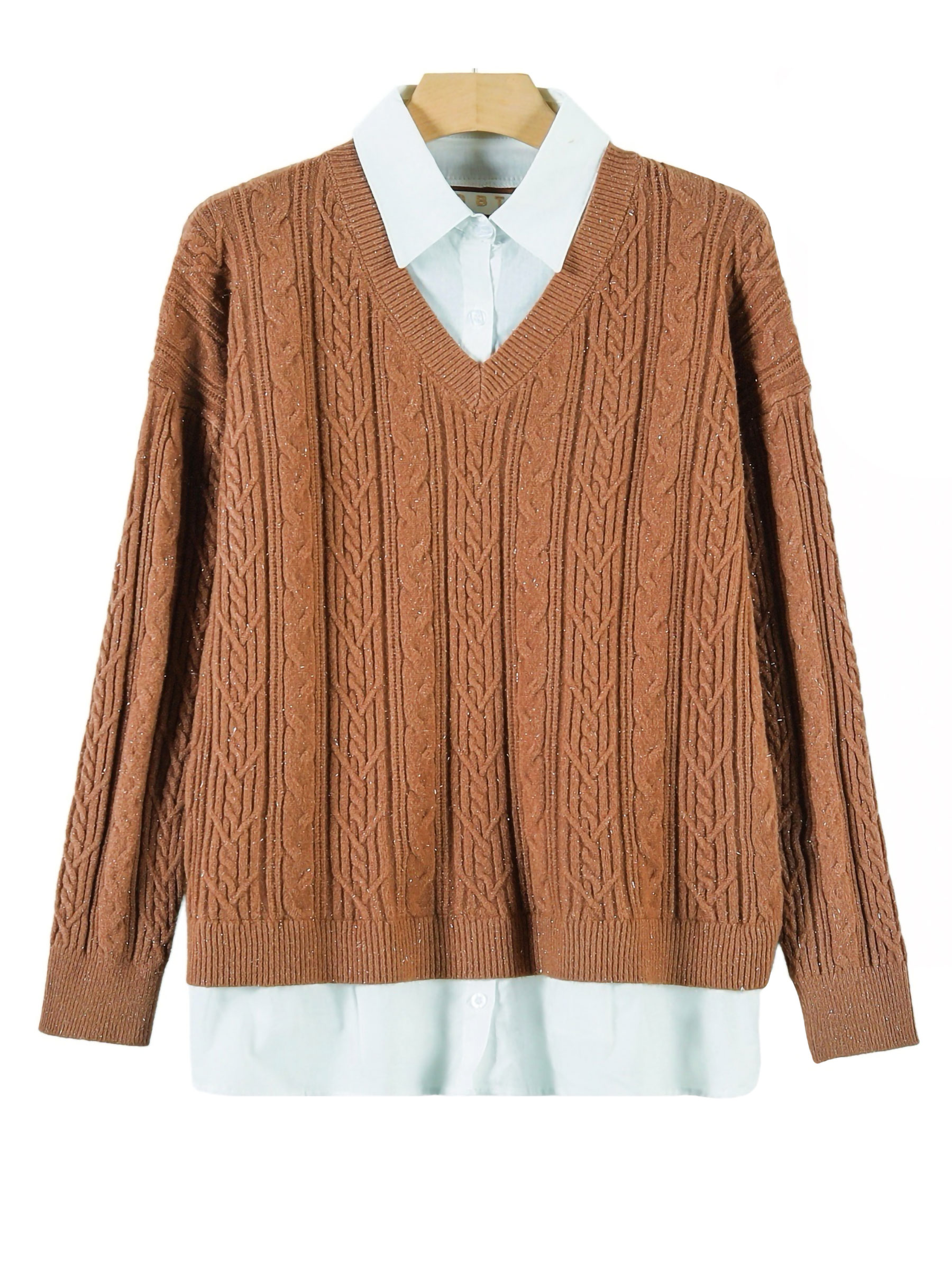 Jersey de punto cálido en estructura con diseño trenzado. Hilo metalizado. Efecto camisa. Acabados en rib. Manga larga.