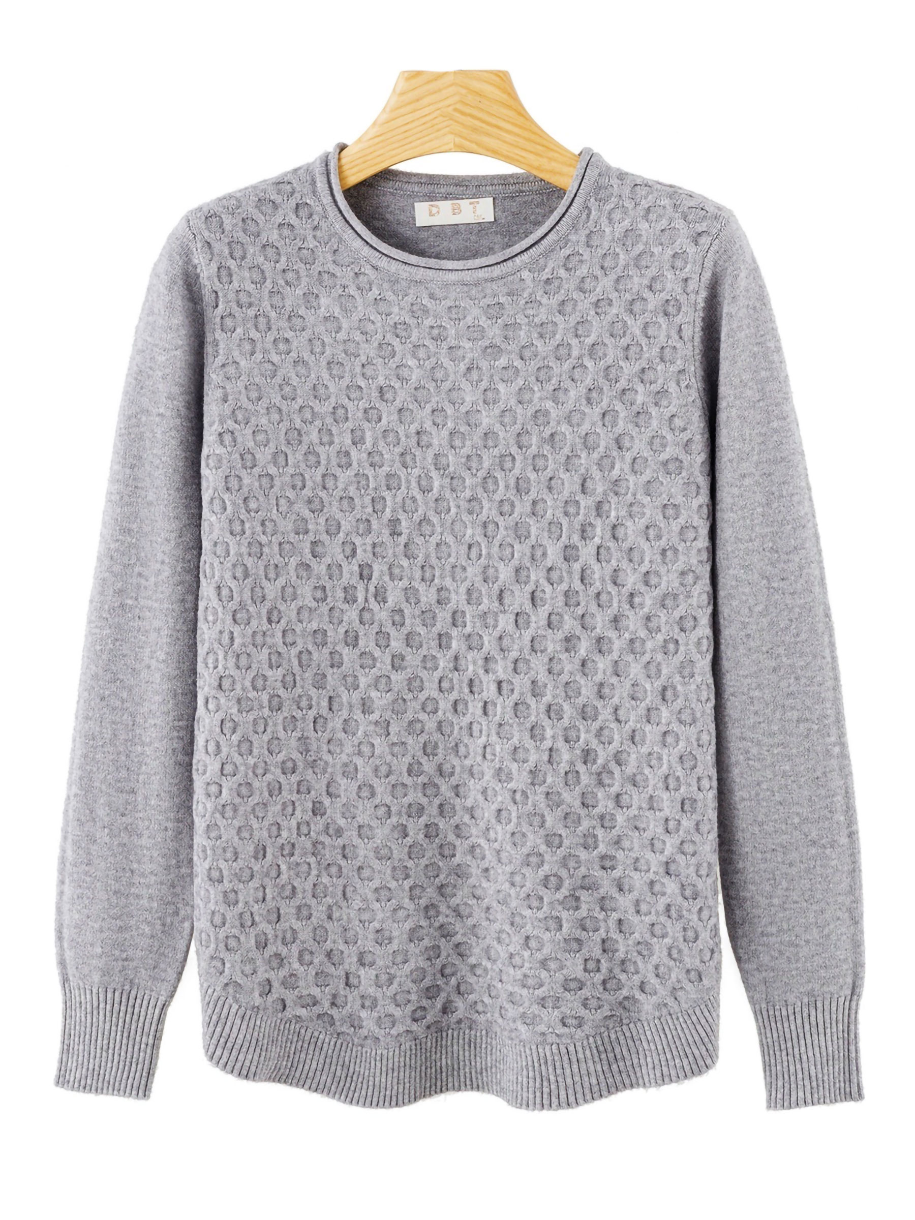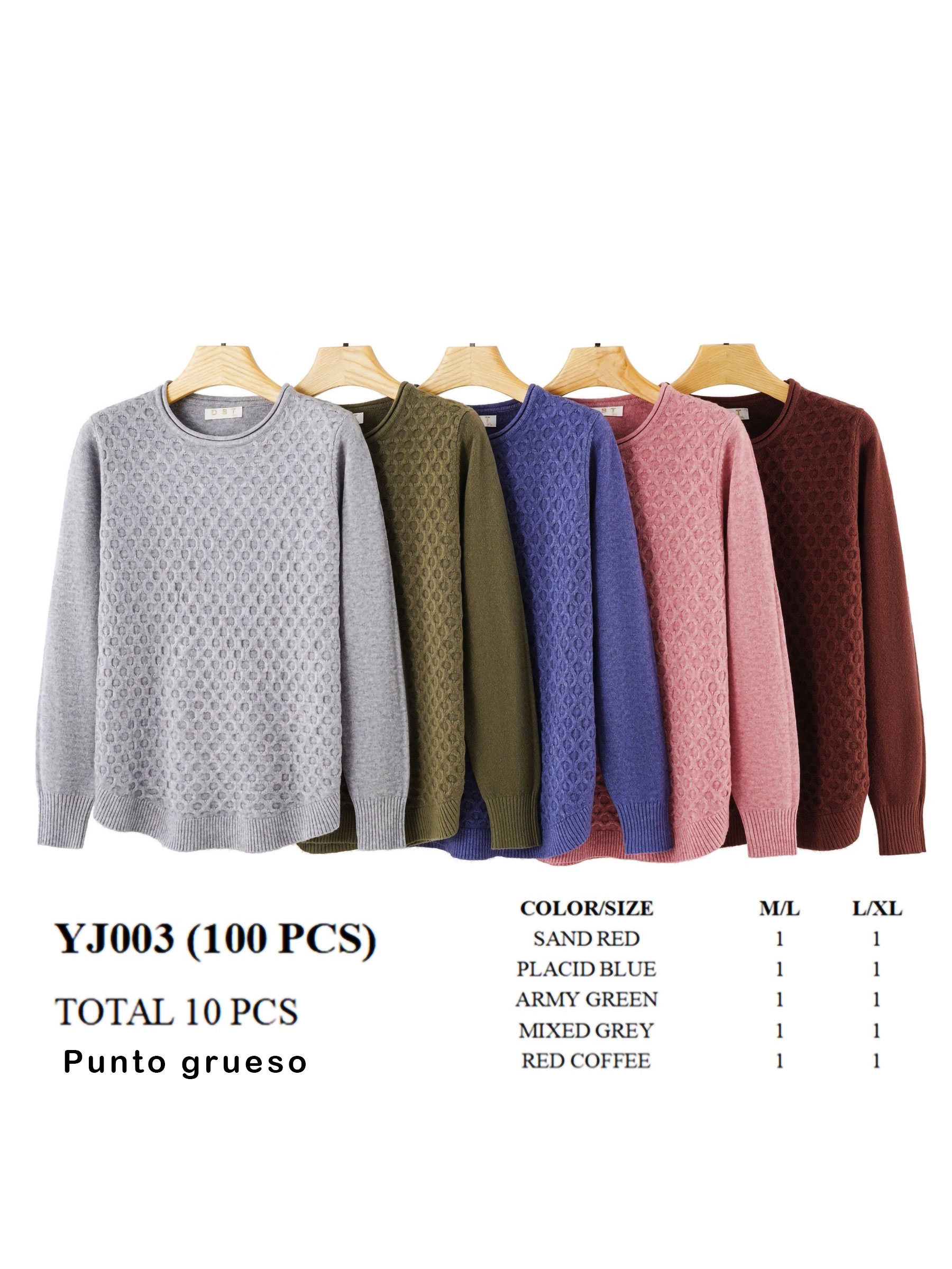 Jersey de punto cálido. Tacto suave. Cuello redondo. Manga larga.
