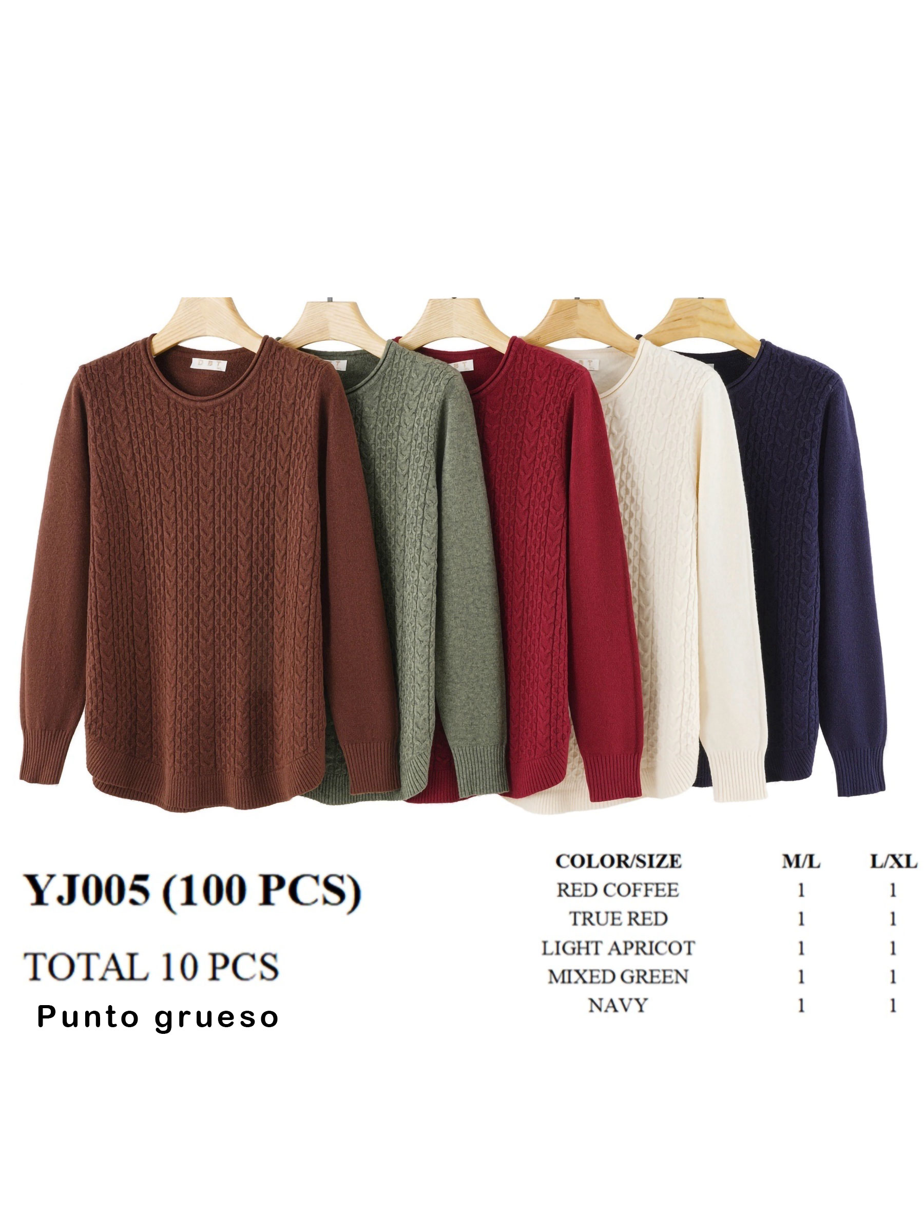 Jersey de punto cálido. Tacto suave. Cuello redondo. Manga larga.