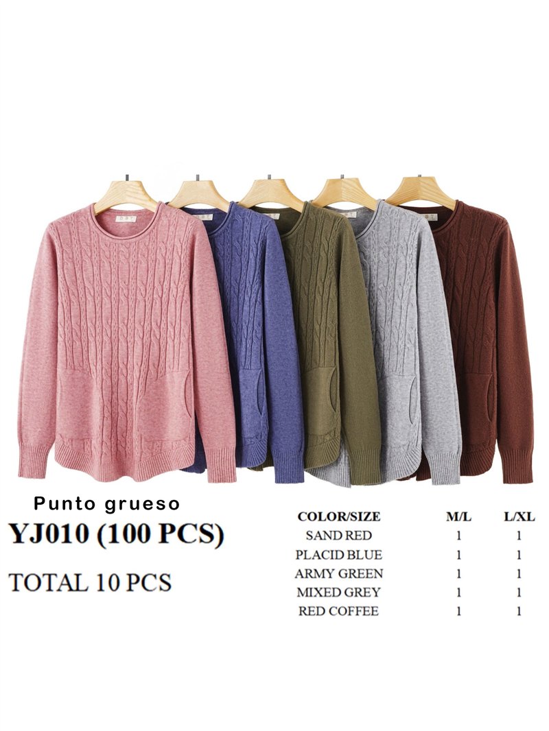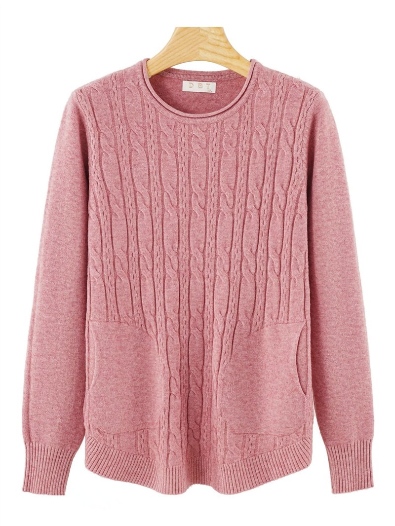 Jersey de punto cálido en estructura con diseño trenzado. Tacto suave. Bolsillos laterales. Cuello redondo. Manga larga.