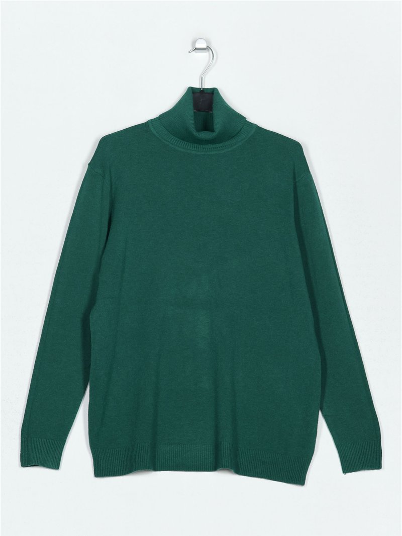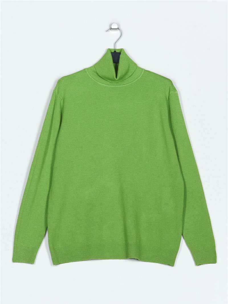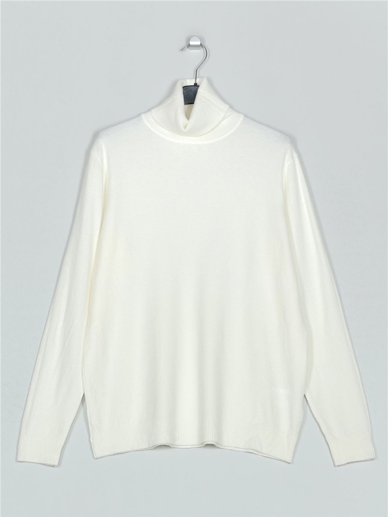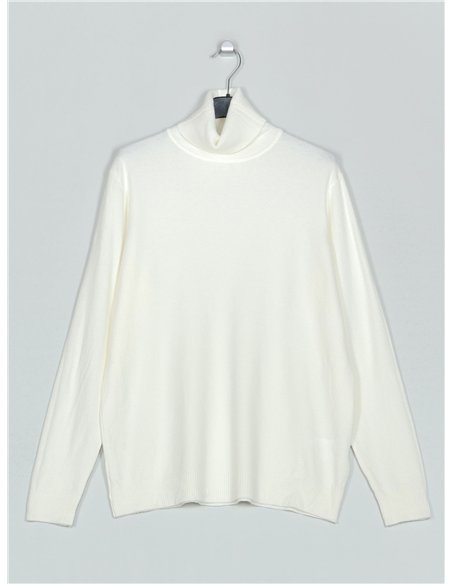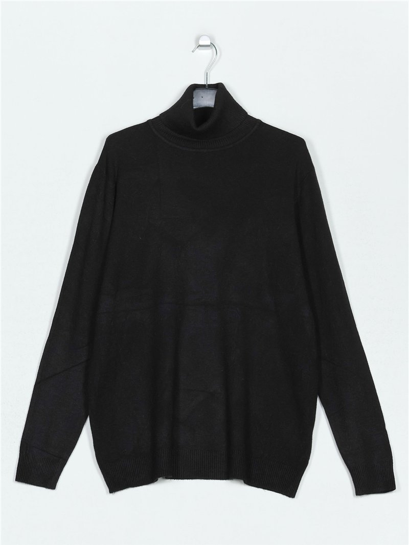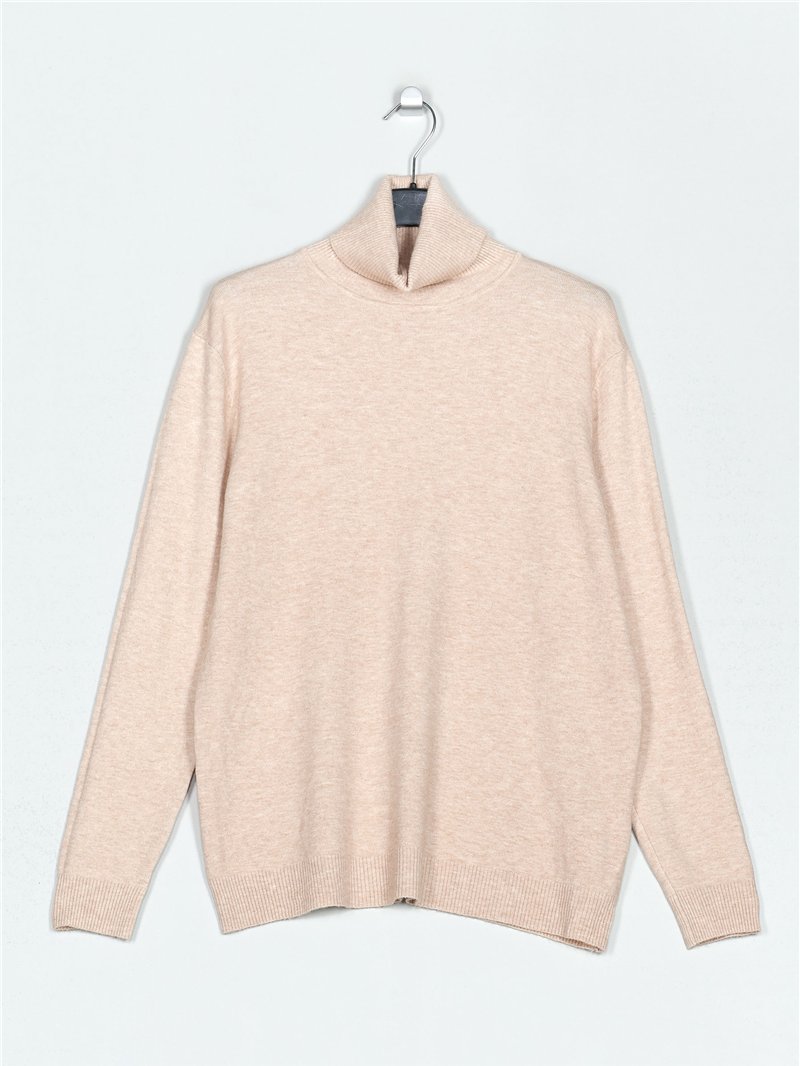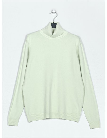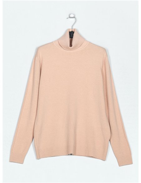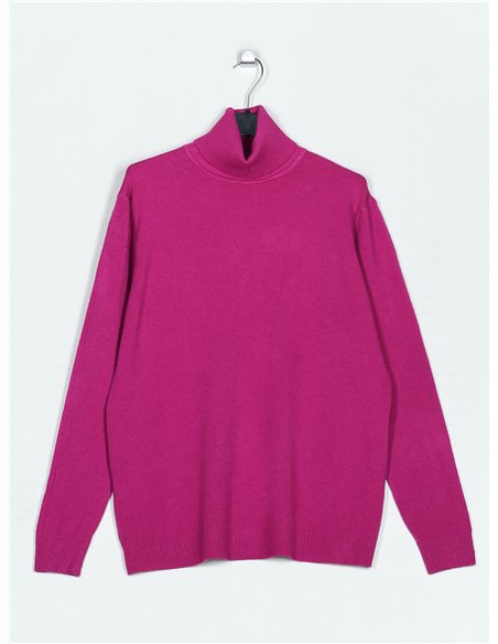 Jersey amplio de punto fino. Tacto suave. Cuello vuelto. Manga larga.