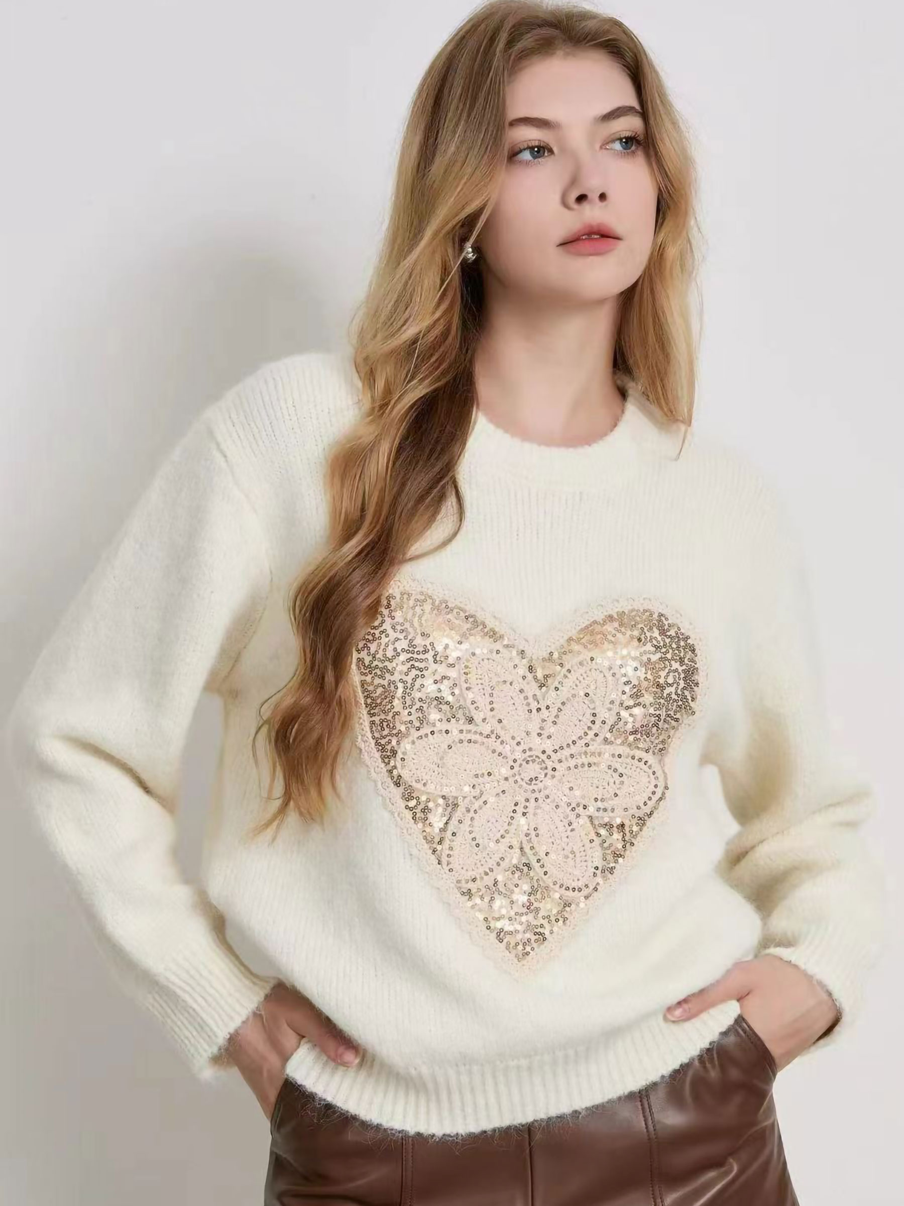 Detalles de jersey corazón lentejuelas LS-AB8035