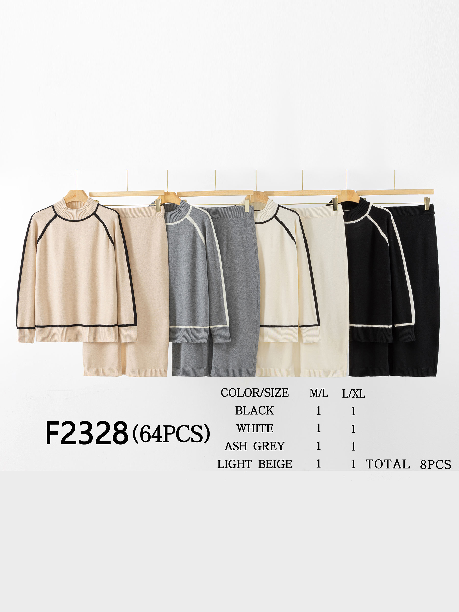 Detalles de conjunto jersey contraste + falda midi DB-F2328