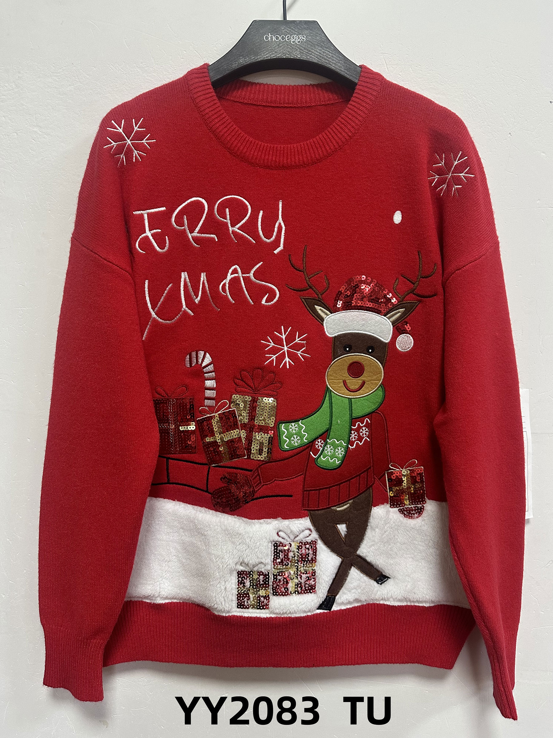 Detalles de jersey navideño reno lentejuelas ZD-YY2083