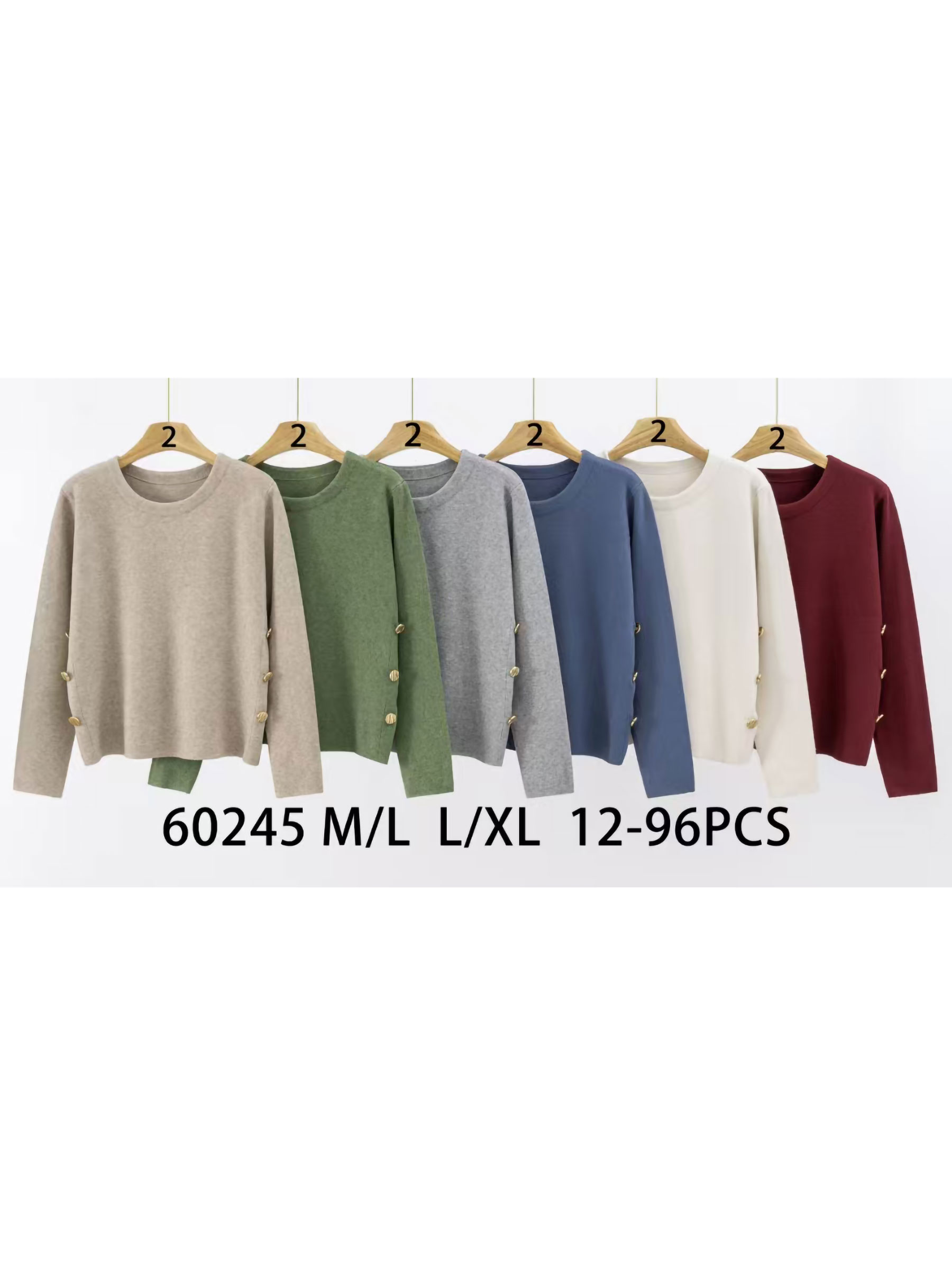 Jersey detalle botones. Cuello redondo. Manga larga.