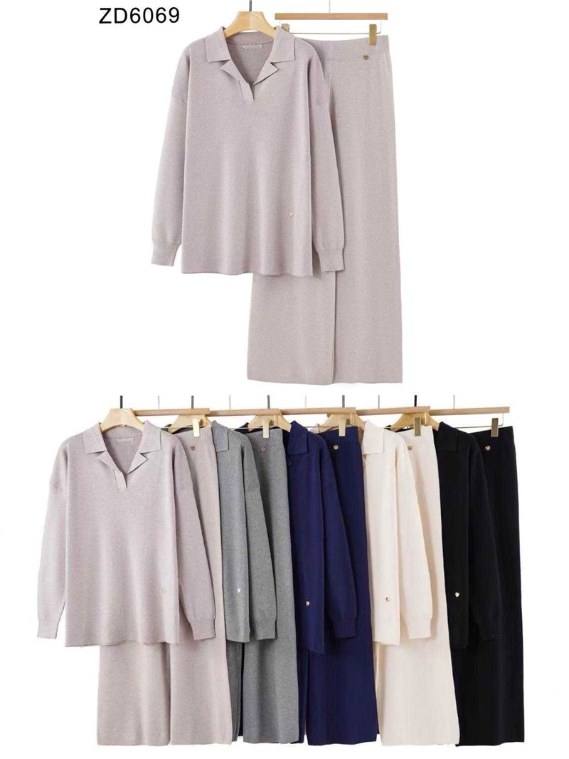 Detalles de conjunto jersey cuello polo talla grande + pantalón ZD-ZD6069