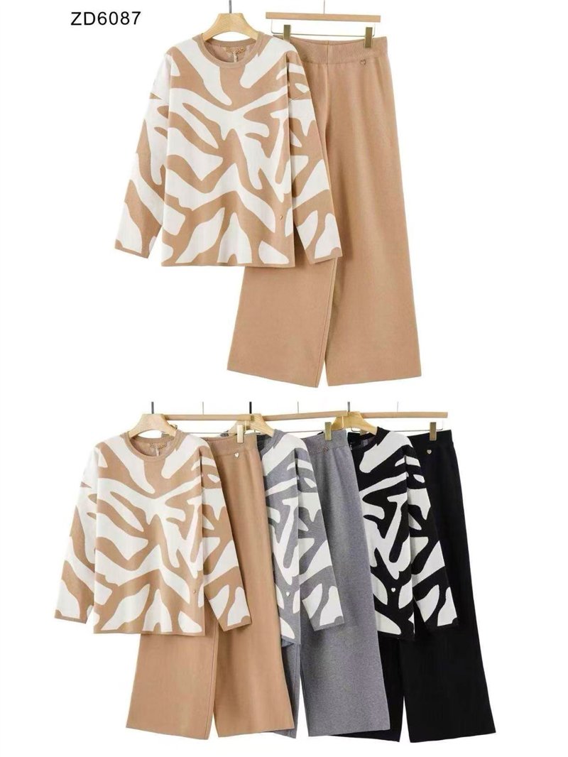 Detalles de conjunto jersey animal print talla grande + pantalón ZD-ZD6087