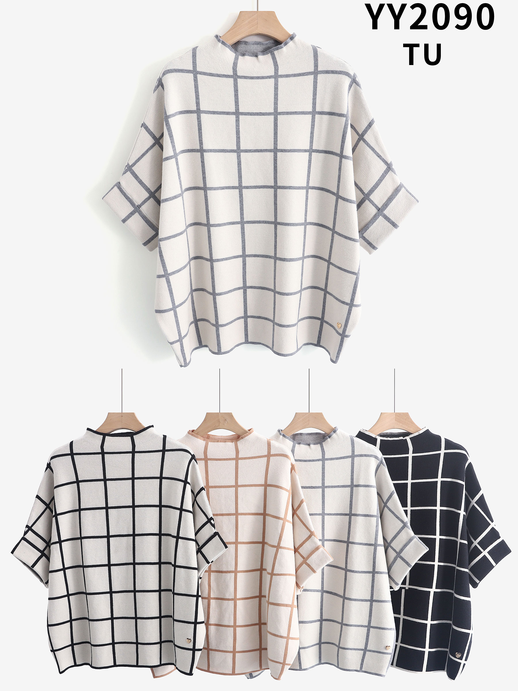 Detalles de jersey de punto estampado cuadros ZD-YY2090