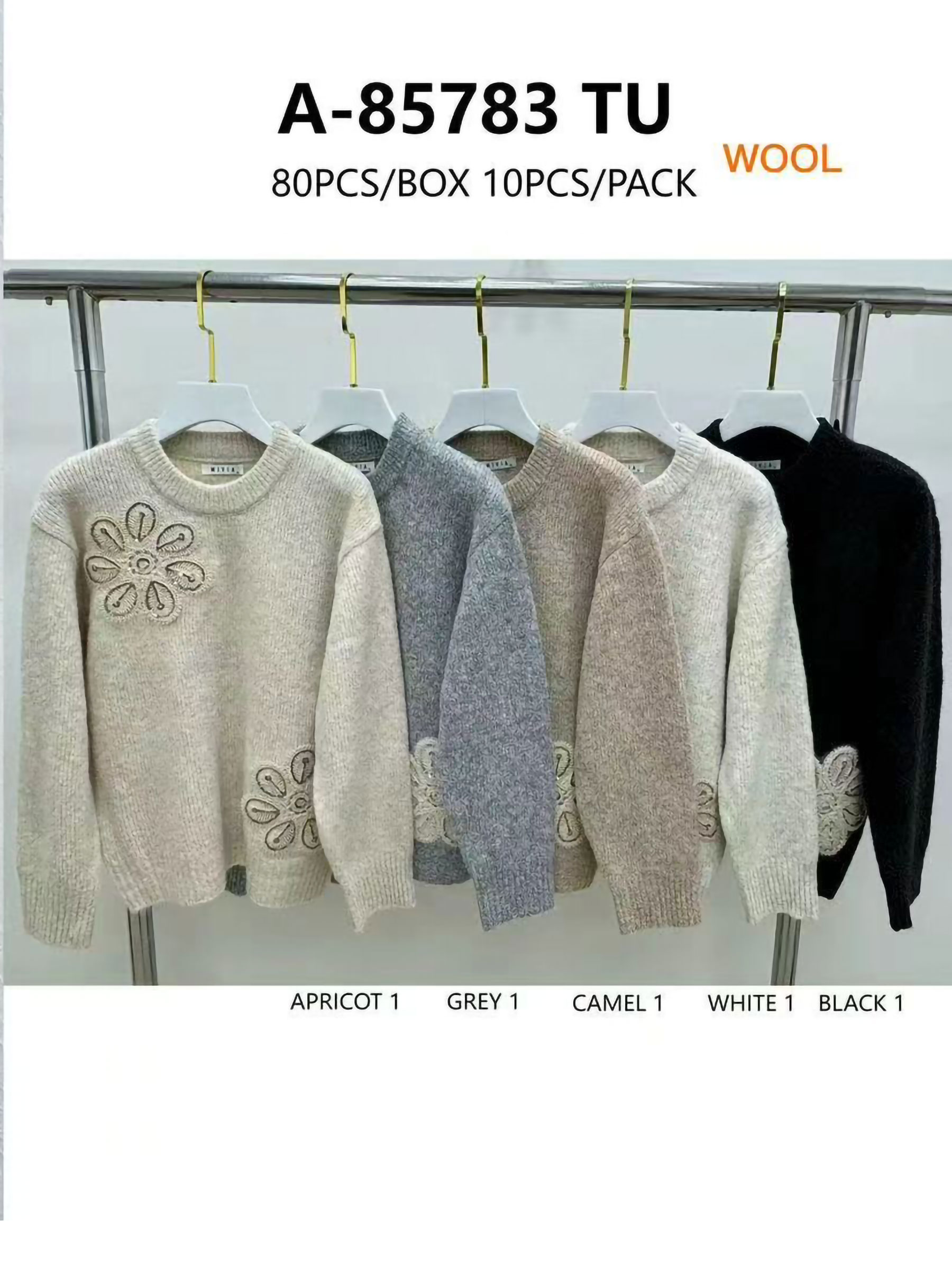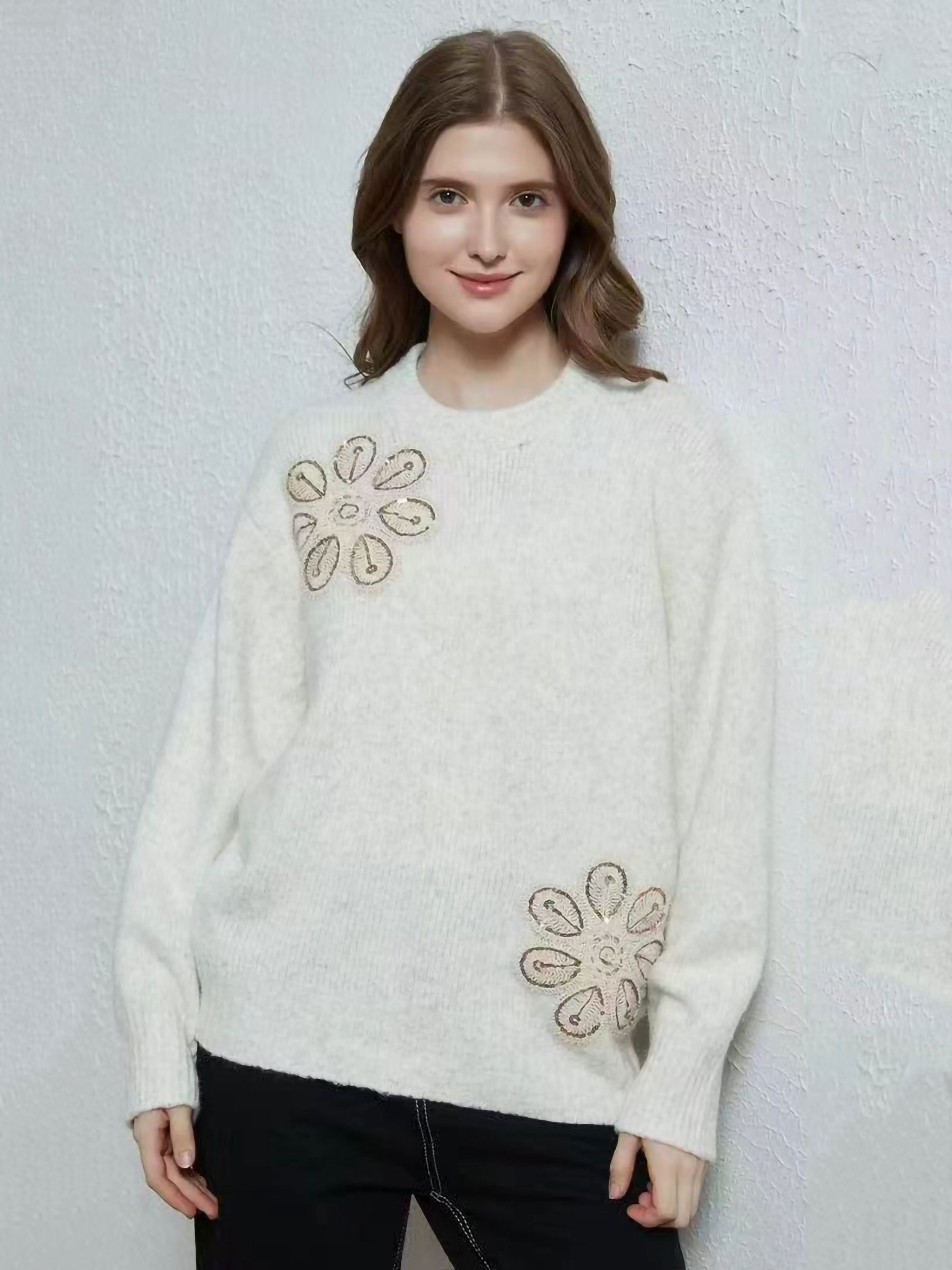 Jersey de punto cálido con bordado floral en relieve y cuello redondo. Manga larga.