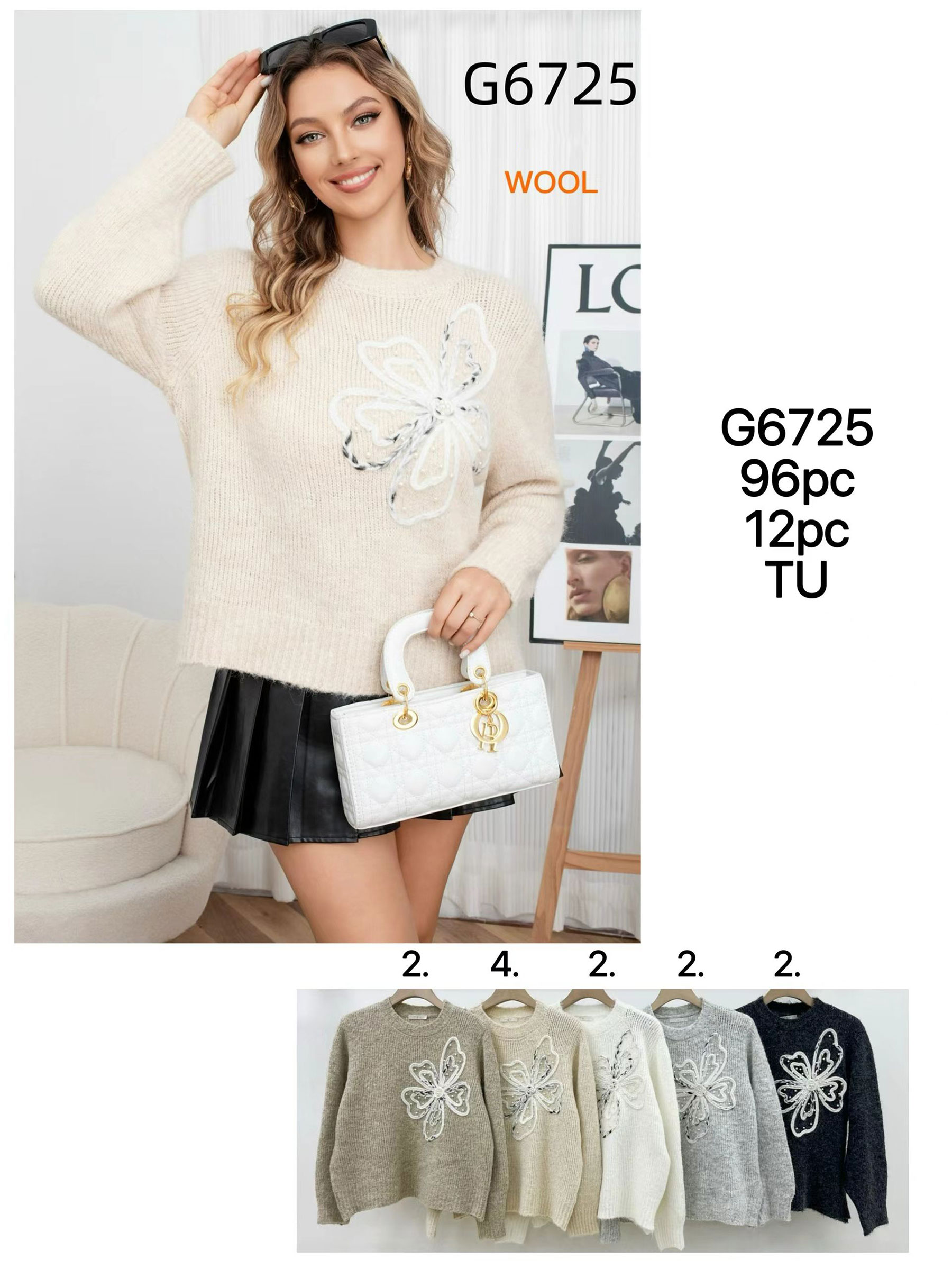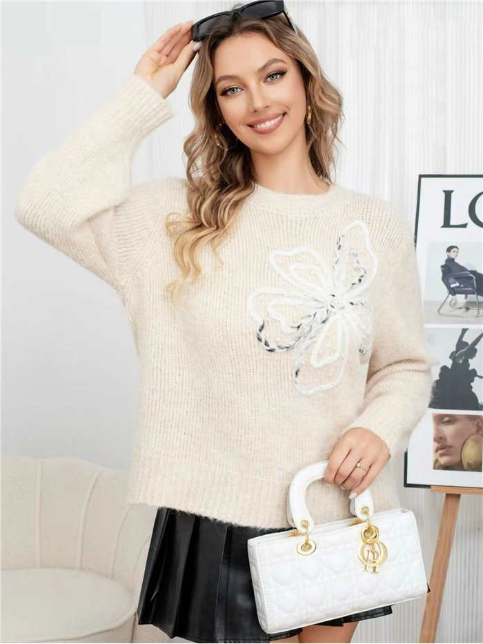 Jersey de punto cálido con bordado floral en relieve y cuello redondo. Manga larga.