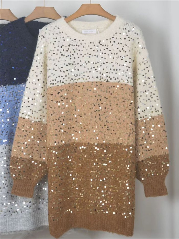 Detalles de jersey largo franjas lentejuelas LS-DC73