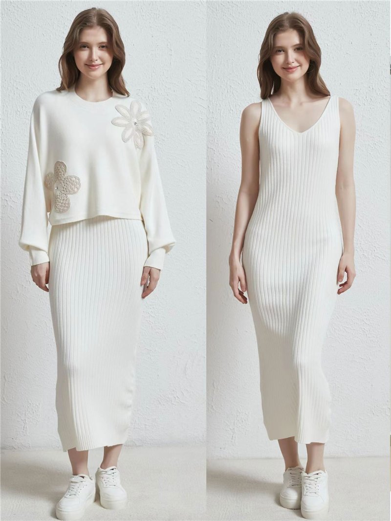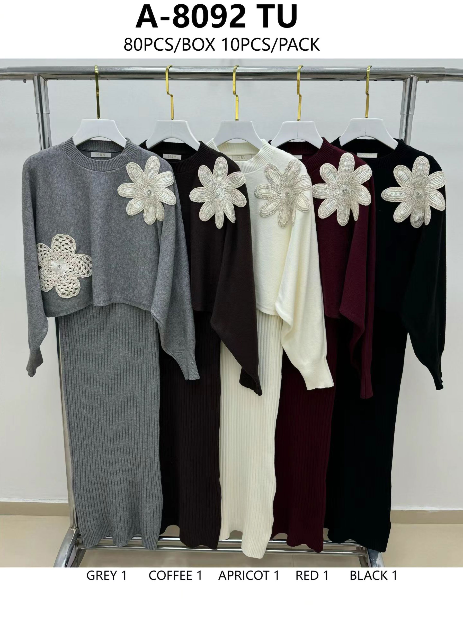 Detalles de conjunto jersey flor grande + vestido LS-A8092