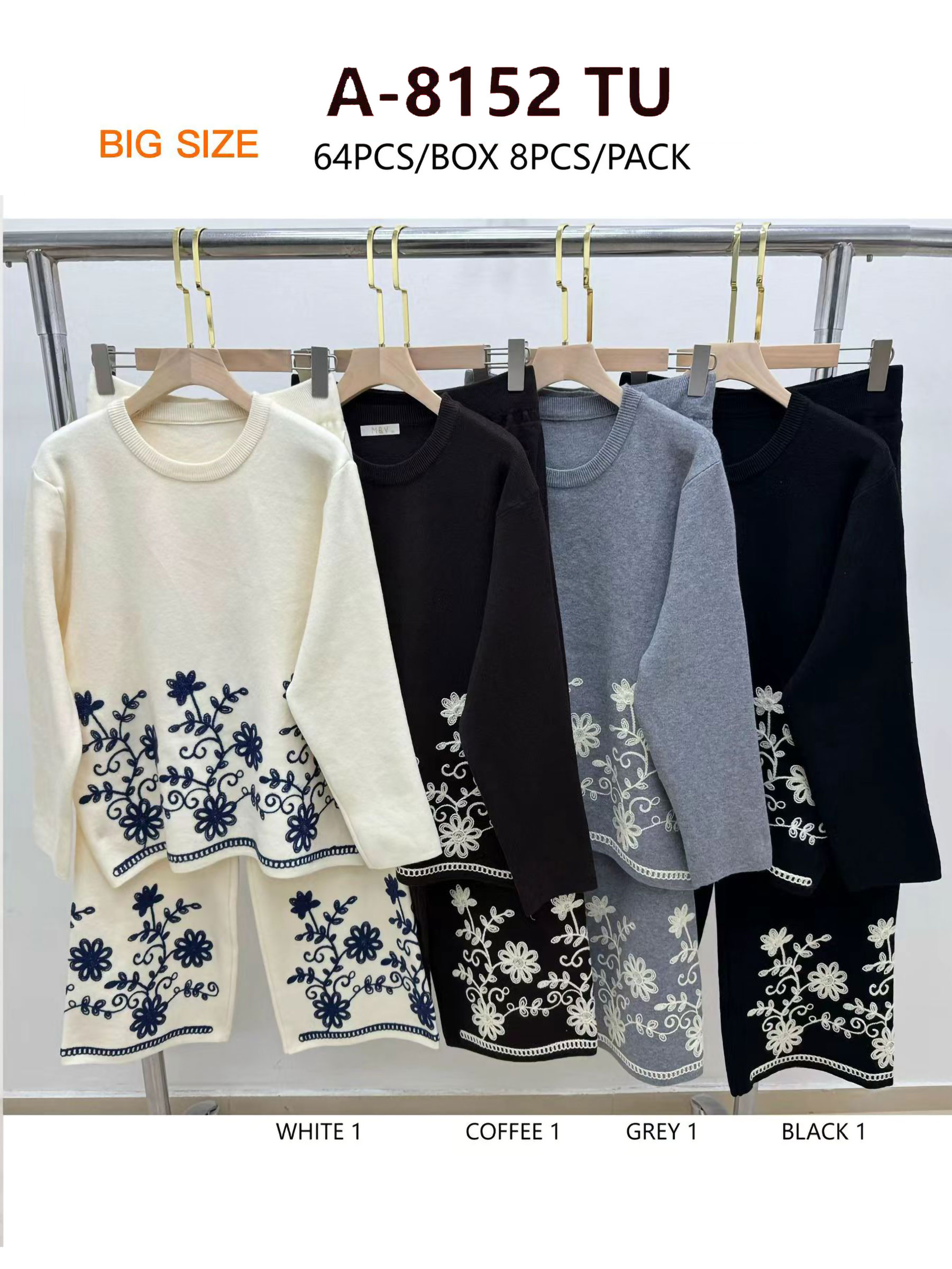 Detalles de conjunto jersey flores bordadas + pantalón LS-A8152