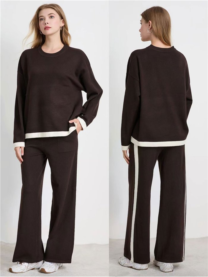 Detalles de conjunto jersey ribete contraste + pantalón LS-A86014