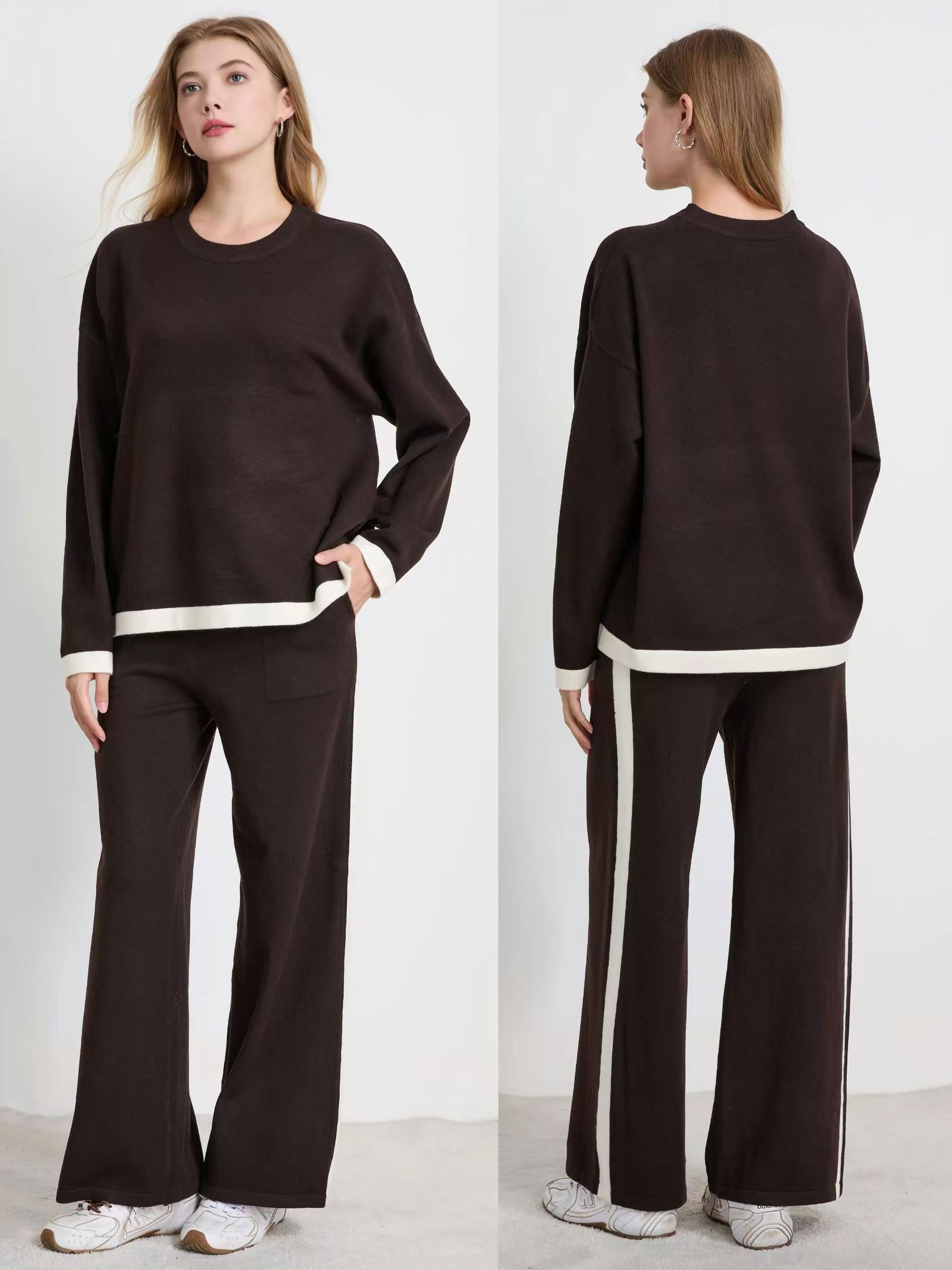 Conjunto punto 2 piezas. Jersey con ribetes en contraste y pantalón largo a juego.