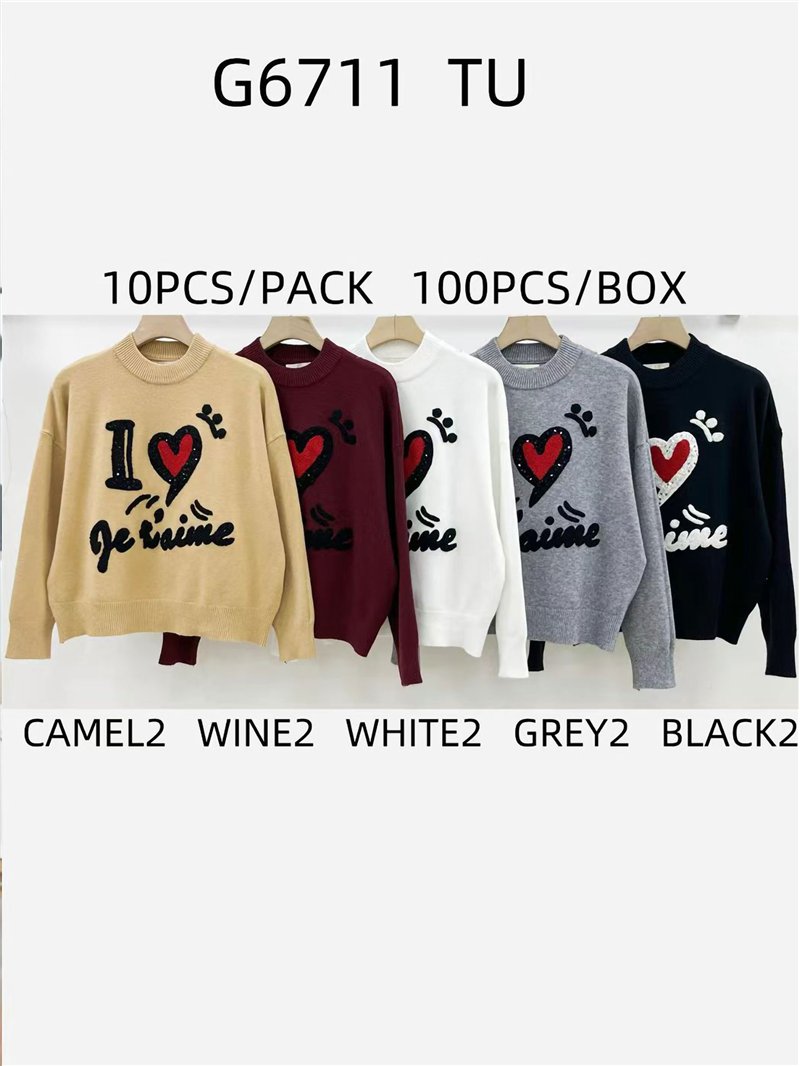 Jersey de punto con estampado de texto y corazón en relieve. Cuello redondo y manga larga.
