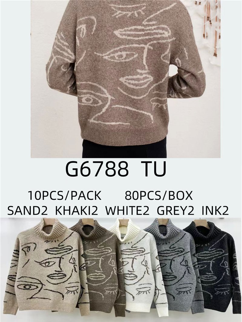 Detalles de jersey cuello vuelto rostro abstracto LS-G6788