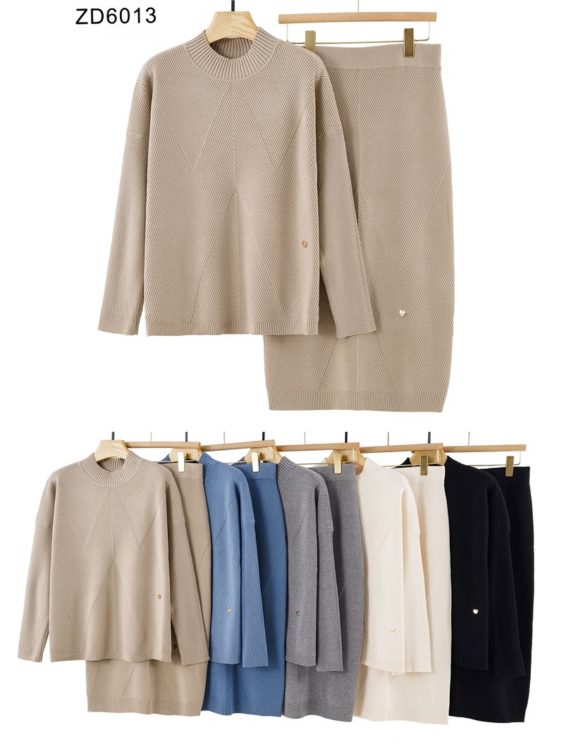 Detalles de conjunto jersey canalé geométrico + falda midi ZD-ZD6013