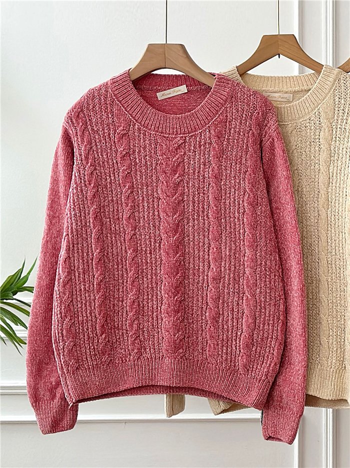 Detalles de jersey chenilla trenzado clásico cuello redondo FA-5348