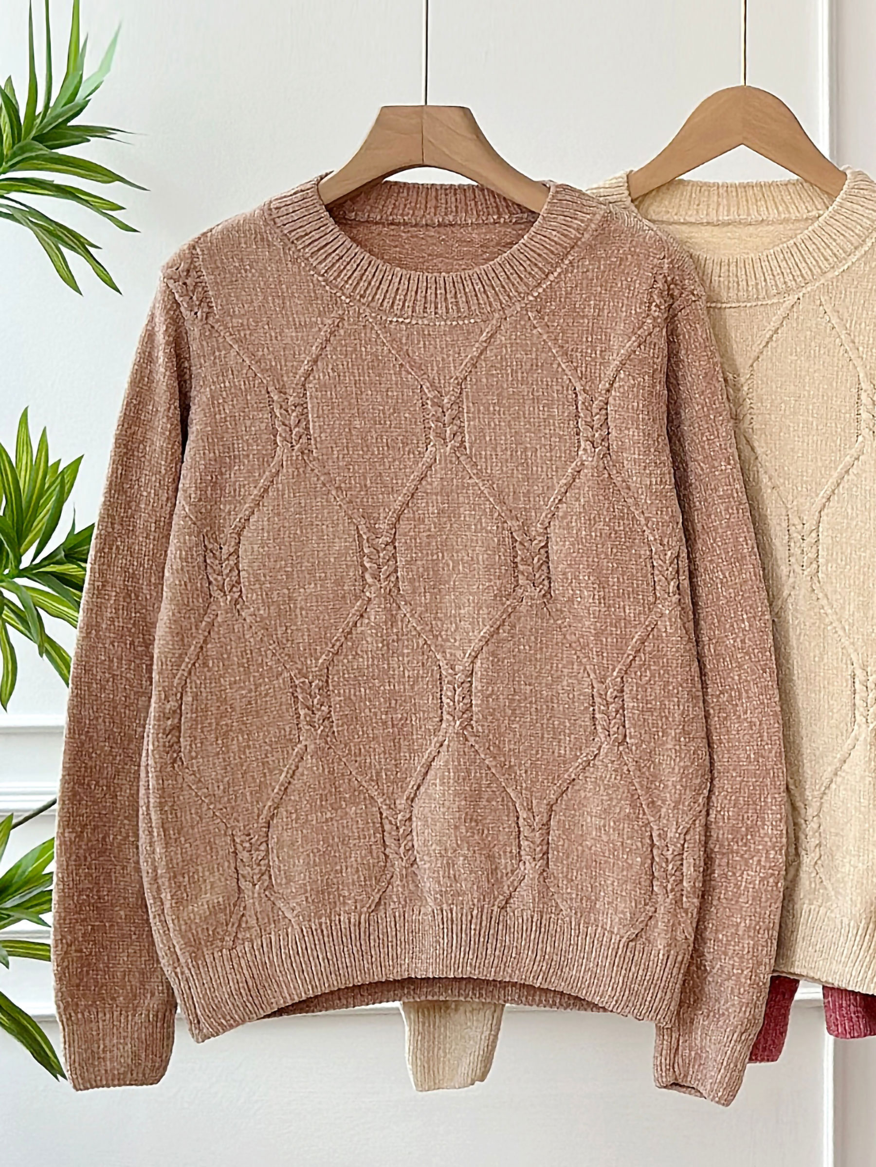 Detalles de jersey chenilla punto relieve rombos cuello redondo FA-5346
