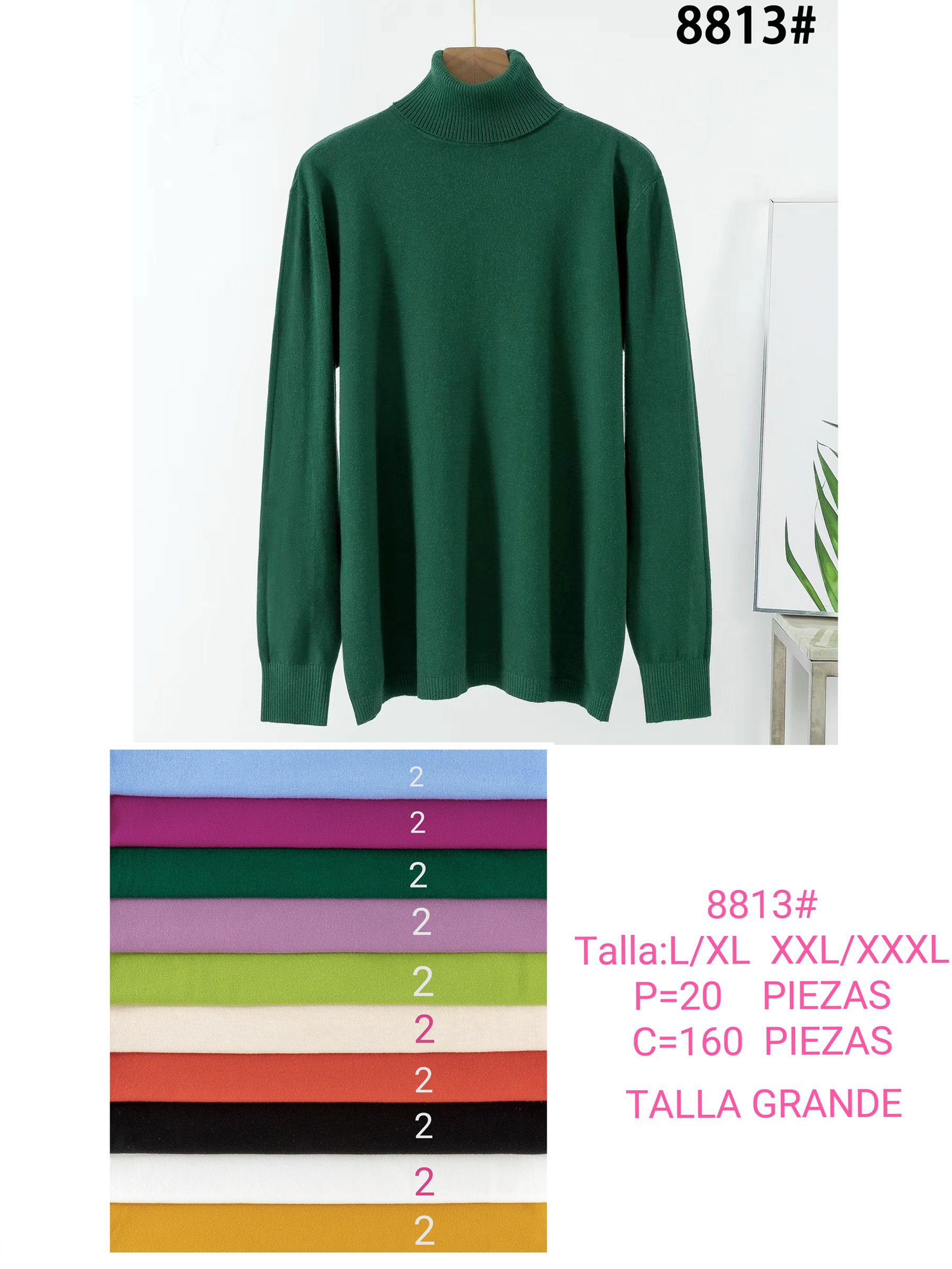 Detalles de jersey de punto cuello vuelto liso talla grande FA-8813
