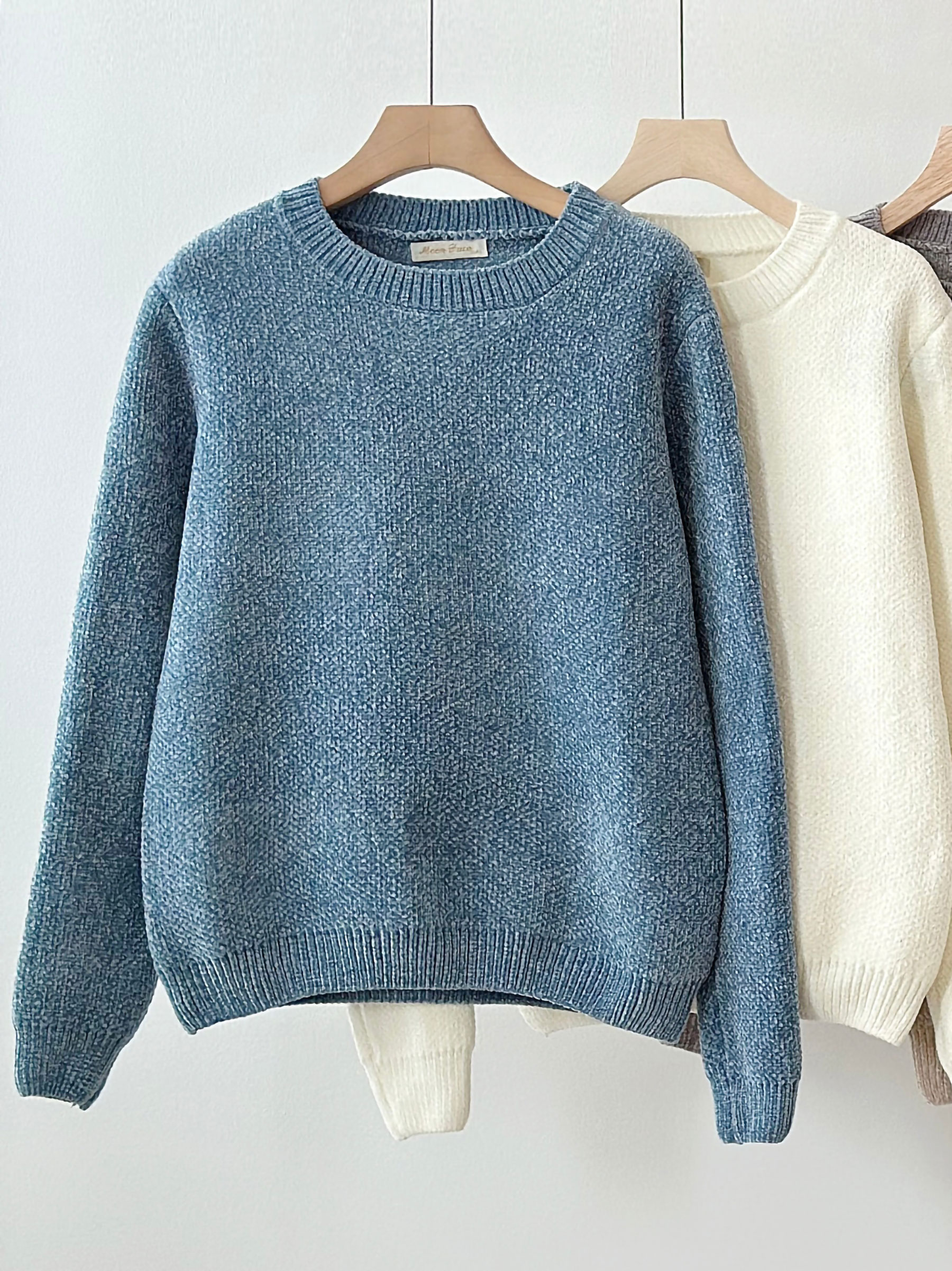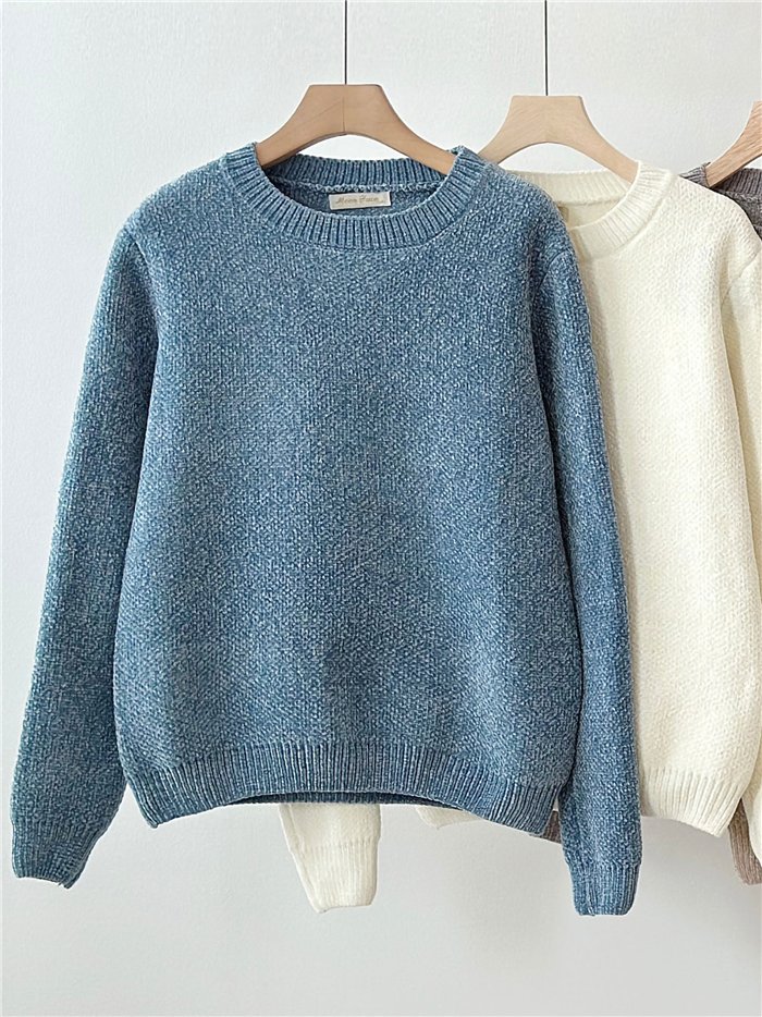 Detalles de jersey básico chenilla cuello redondo FA-5606