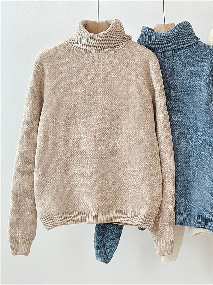 Detalles de jersey básico chenilla cuello vuelto FA-5609