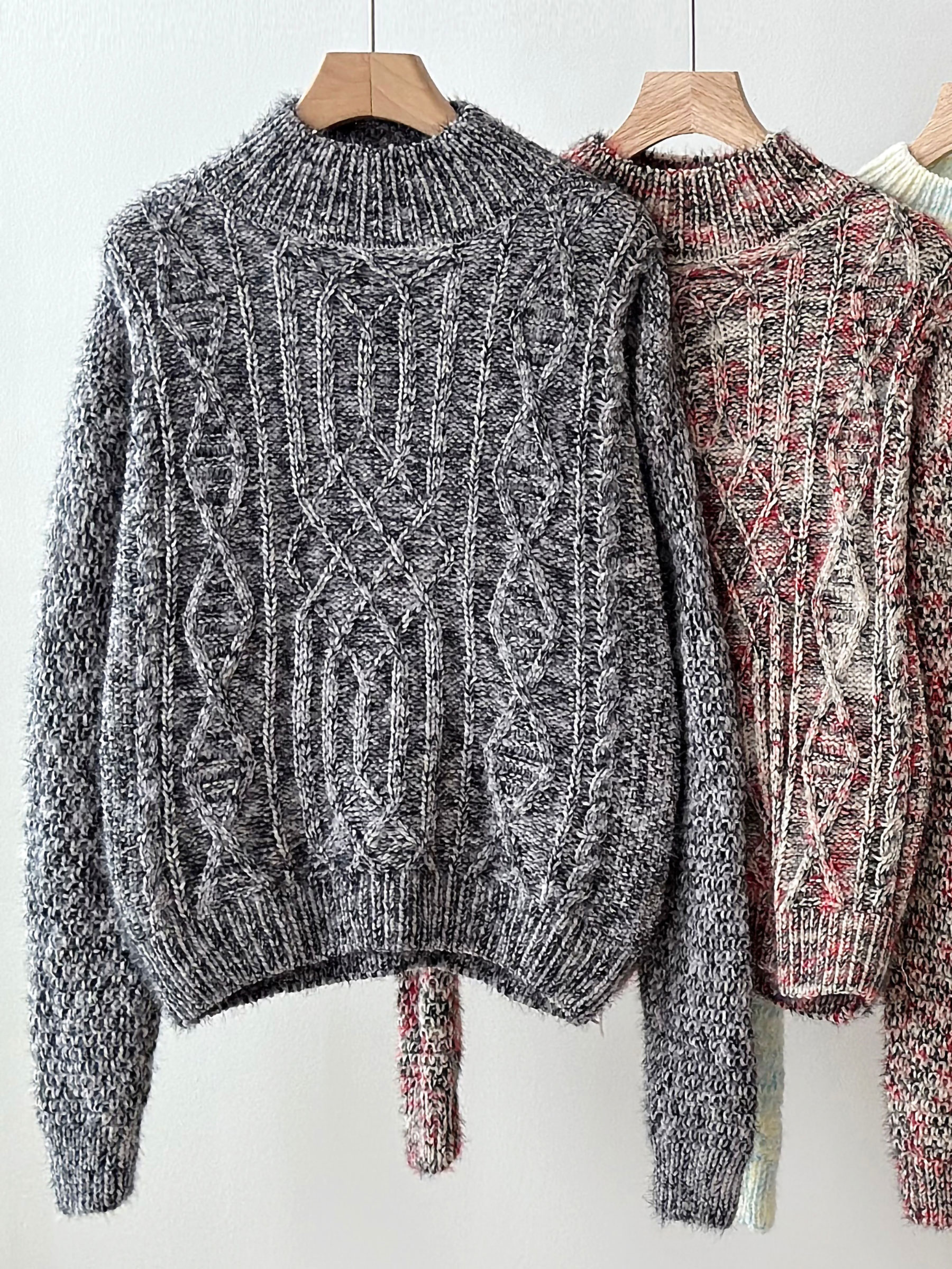 Detalles de jersey jaspeado trenzado cuello perkins FA-5658