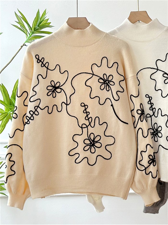 Detalles de jersey bordado floral relieve FA-5376