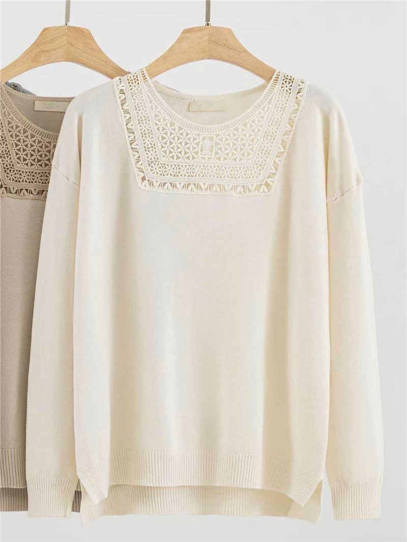 Detalles de jersey soft con guipur LS-5398