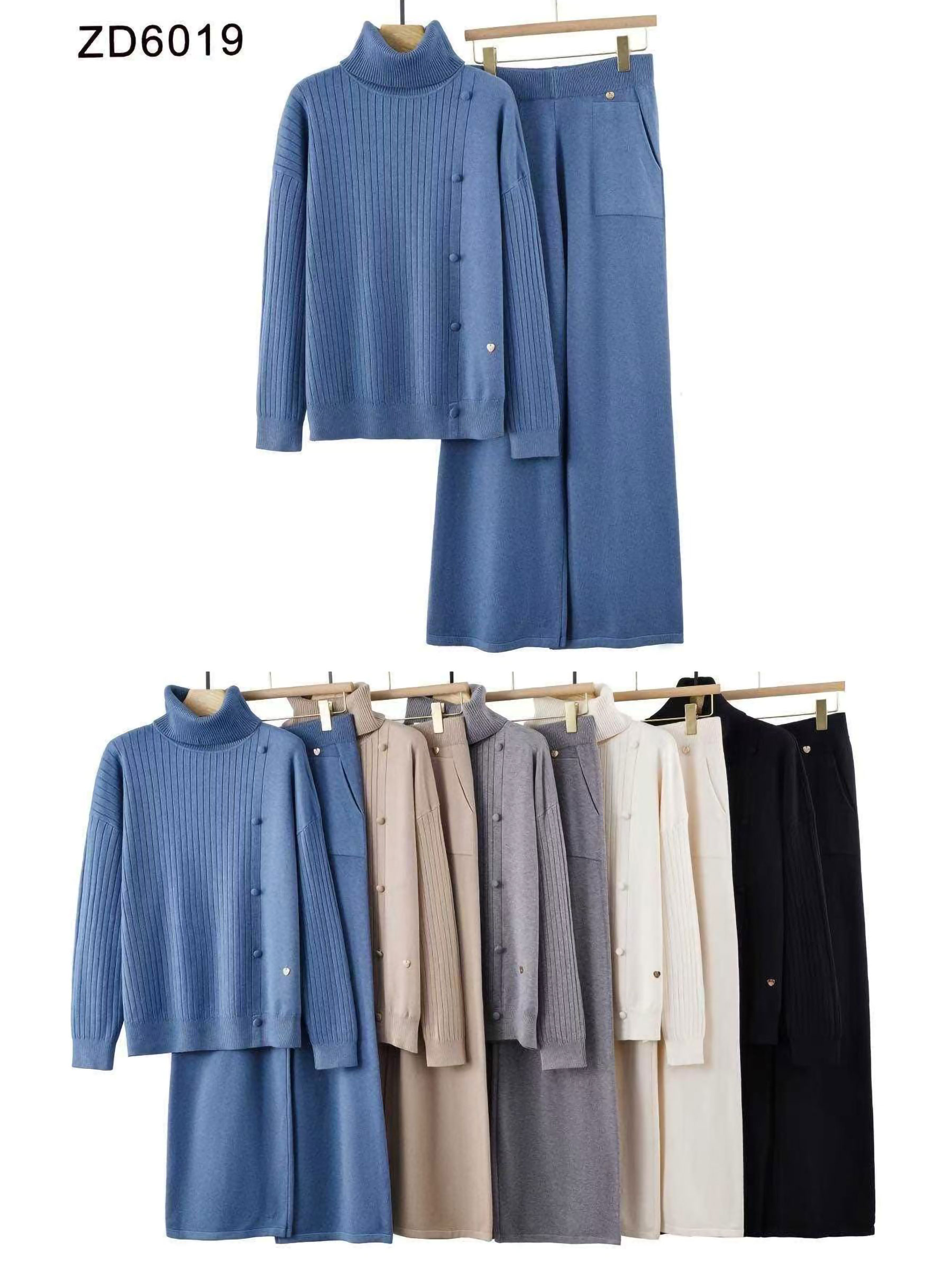 Detalles de conjunto jersey canalé cuello vuelto + pantalón bolsillo ZD-ZD6019