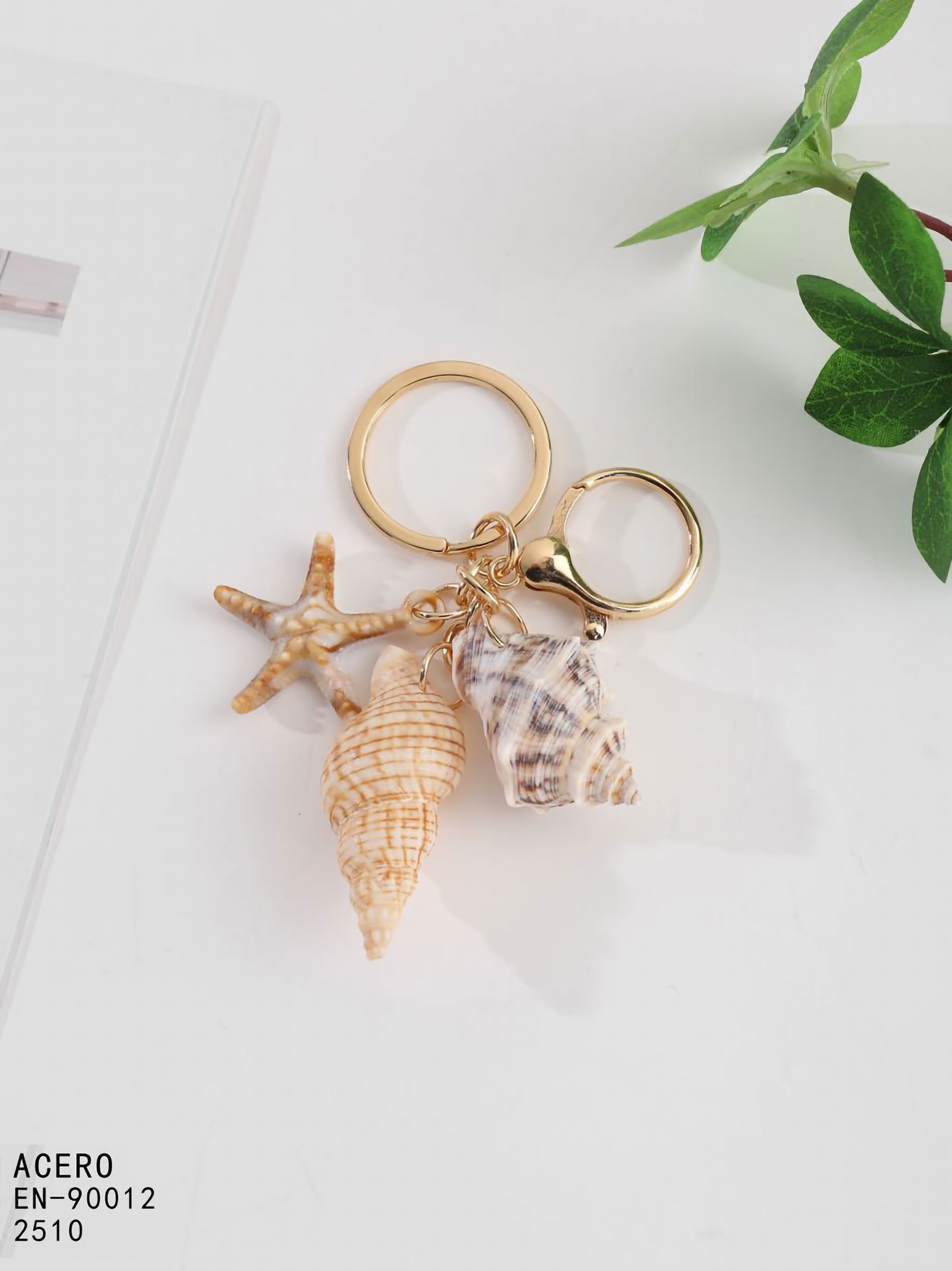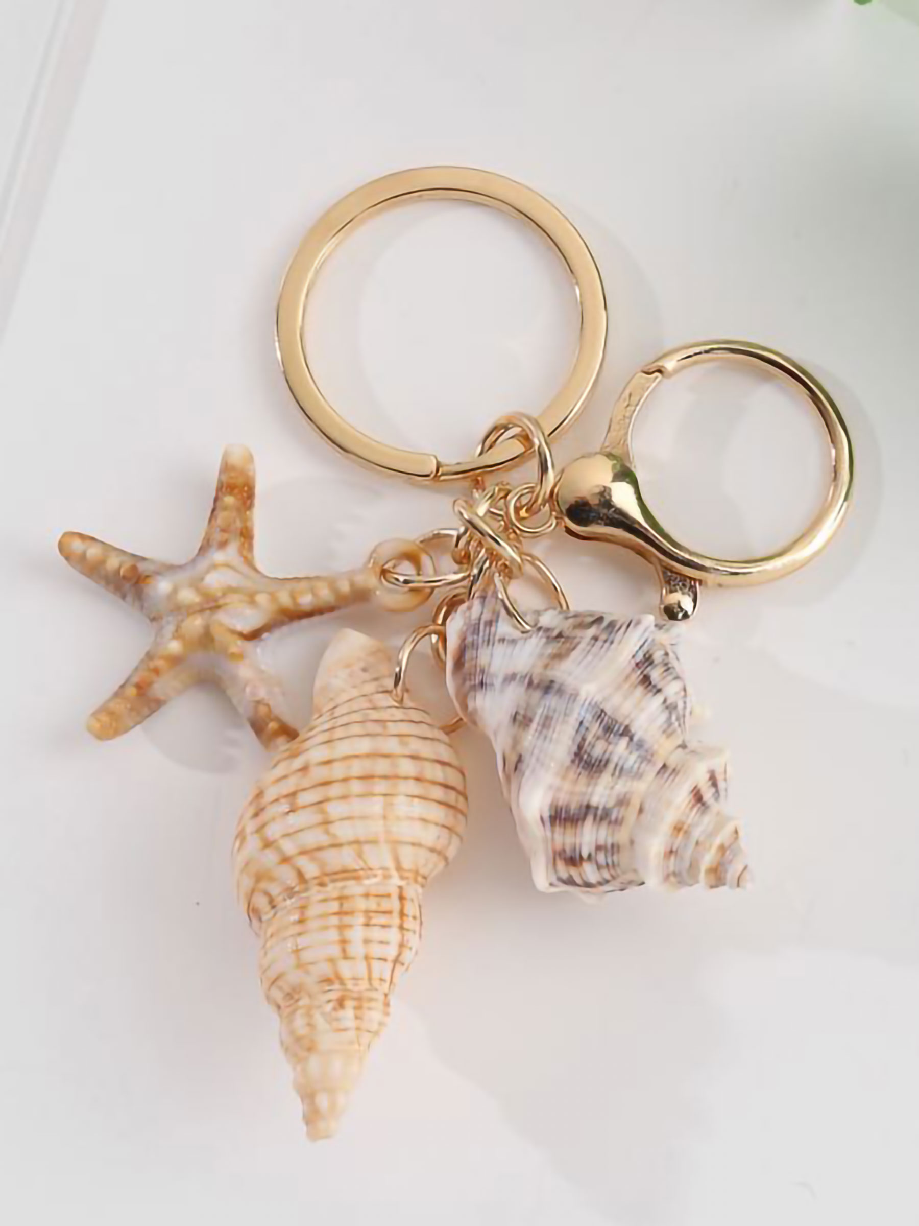Llavero doble caracola efecto natural con estrella de mar
