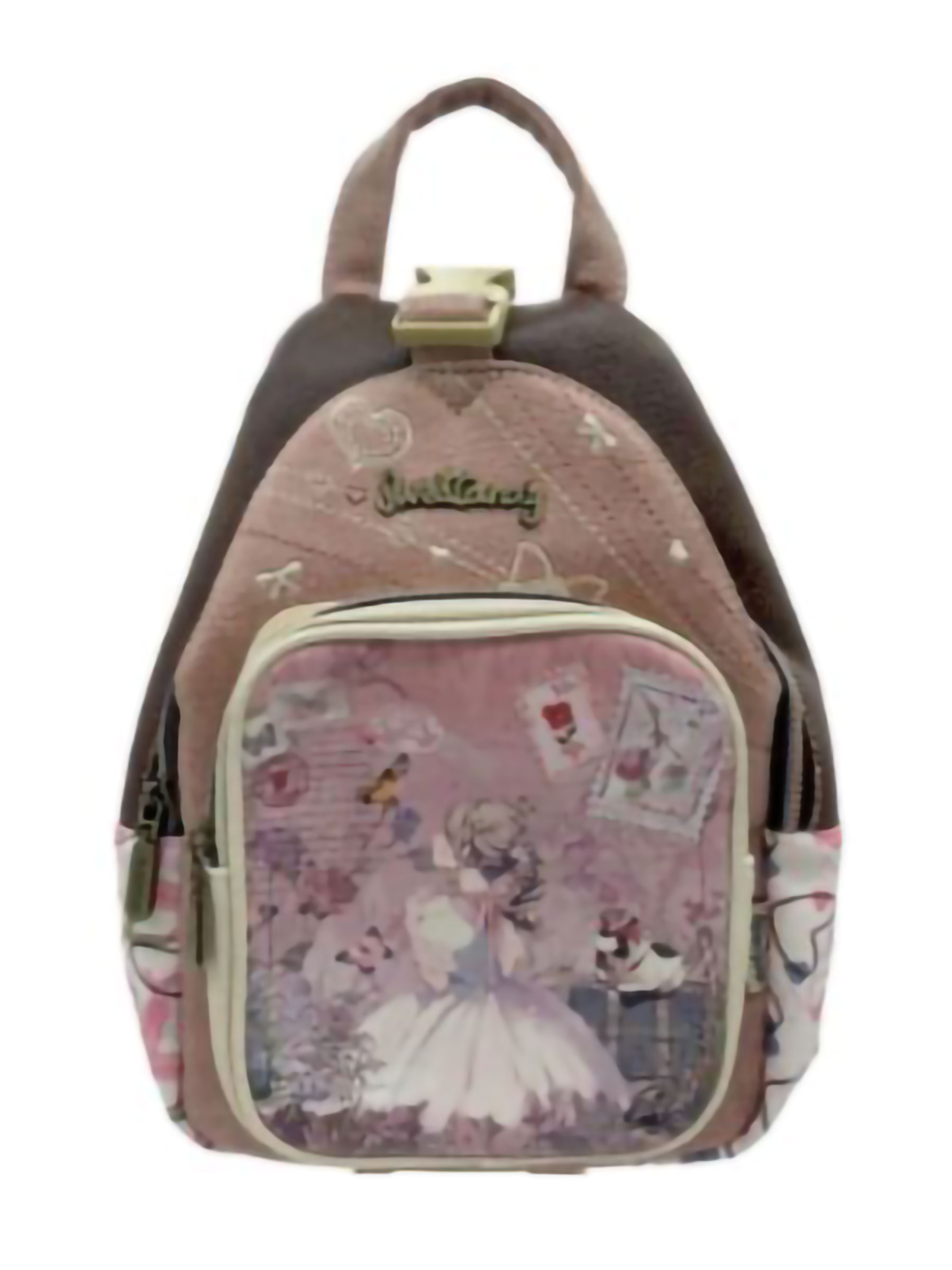 Mochila estampada. Bolsillo en la parte trasera con cierre mediante cremallera. Material polipiel. Asa de mano. Asas de hombro ajustables. Cierre mediante cremallera metálica.