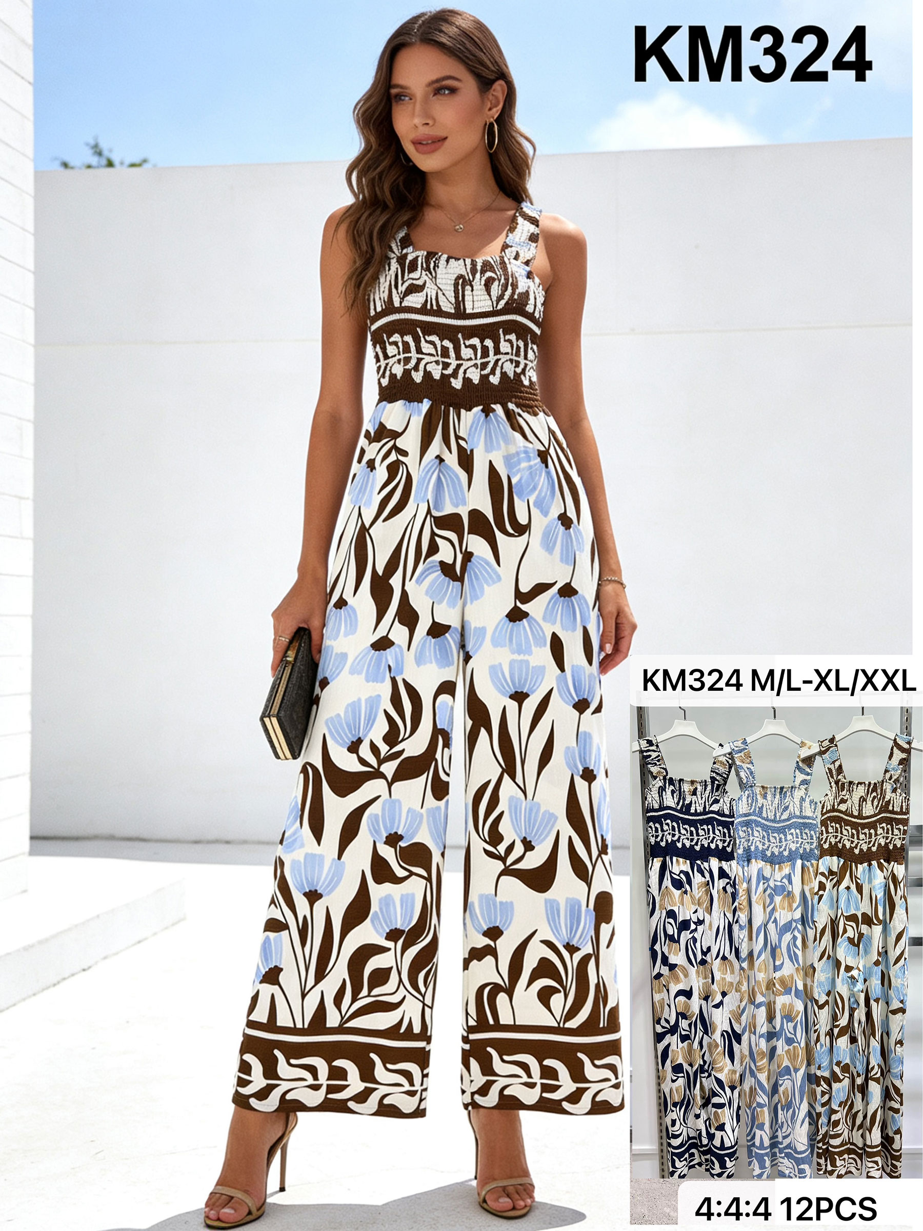 Mono palazzo estampado con tirantes y cuerpo fruncido