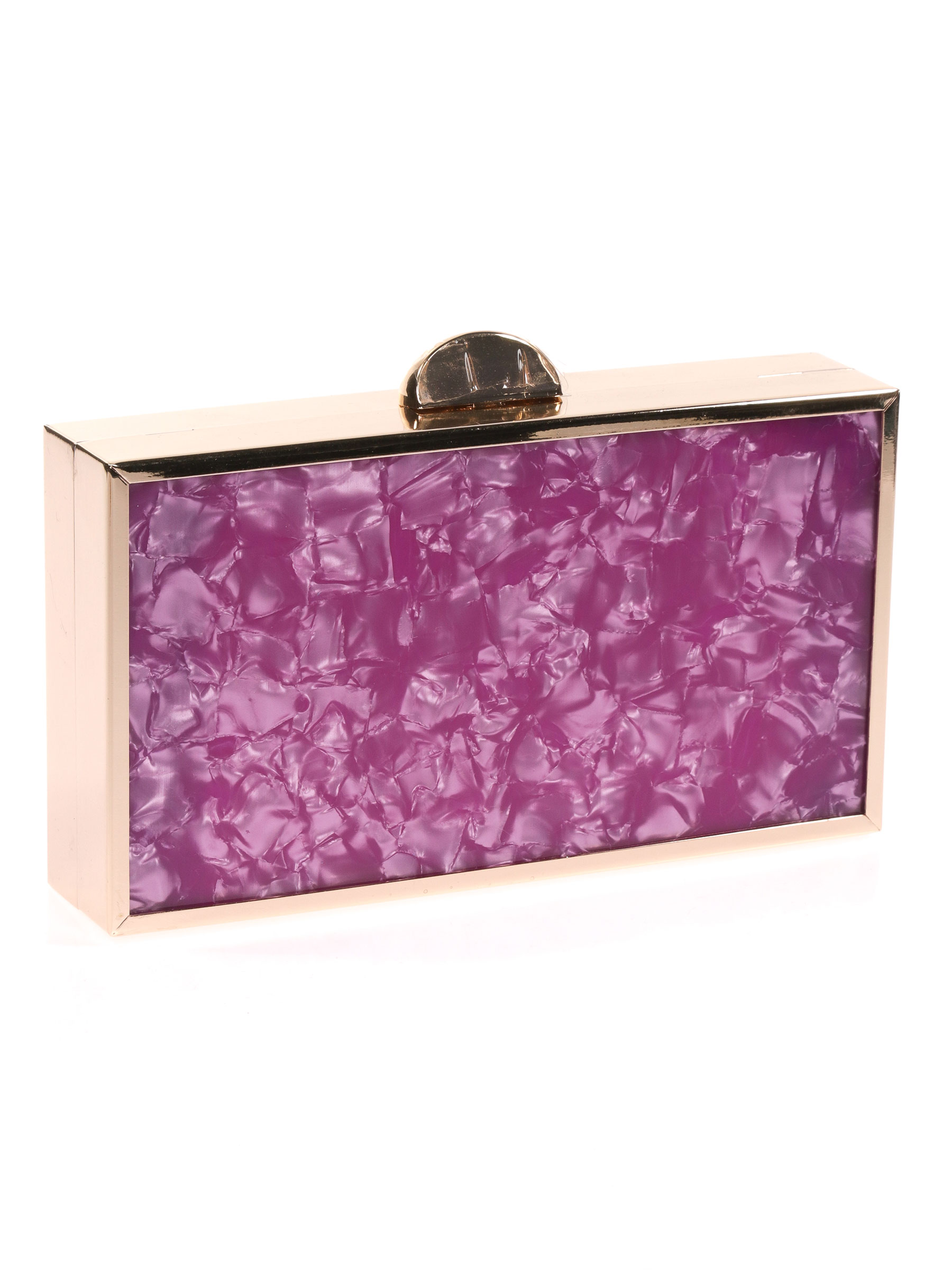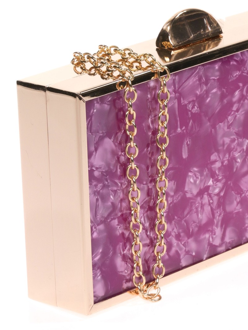 Bolso de fiesta. Material símil nácar. Detalle metálico. Asa de hombro en cadena. Forro sin bolsillo interior. Cierre metálico dorado.