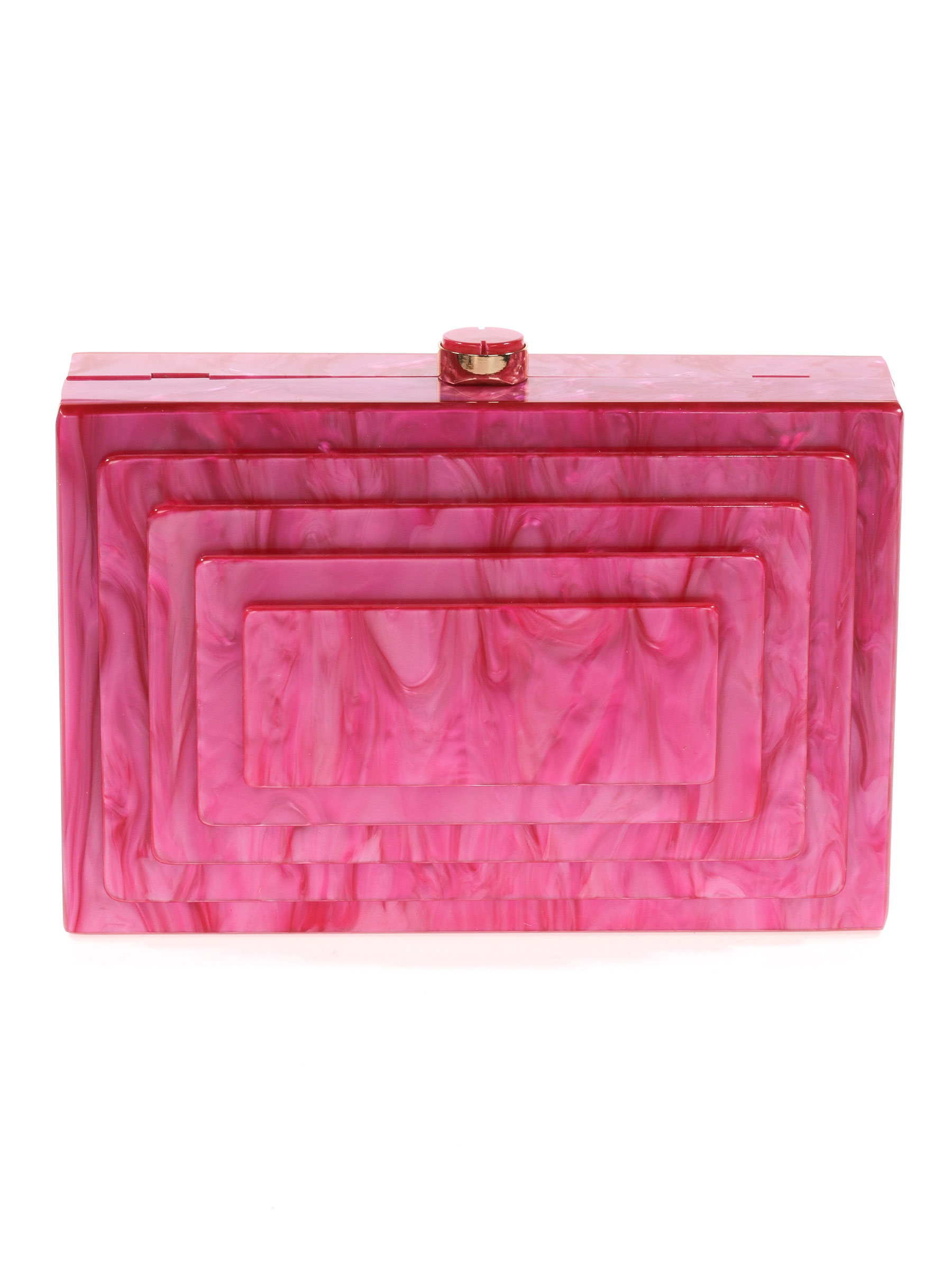 Bolso de fiesta. Material símil nácar con relieve. Asa de hombro en cadena. Forro sin bolsillo interior. Cierre mediante imán.