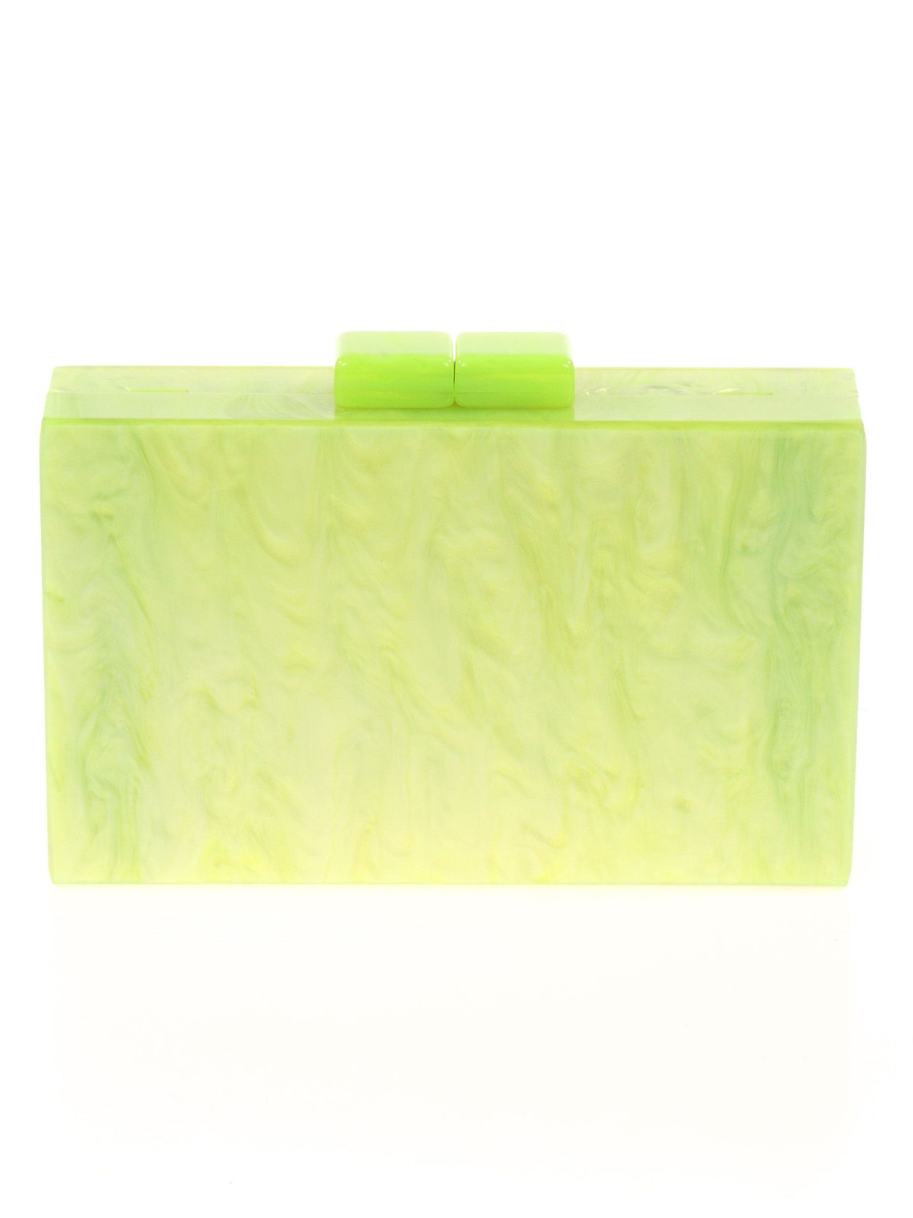 Bolso de fiesta. Material símil nácar. Asa de hombro en cadena. Forro sin bolsillo interior. Cierre mediante imán.
