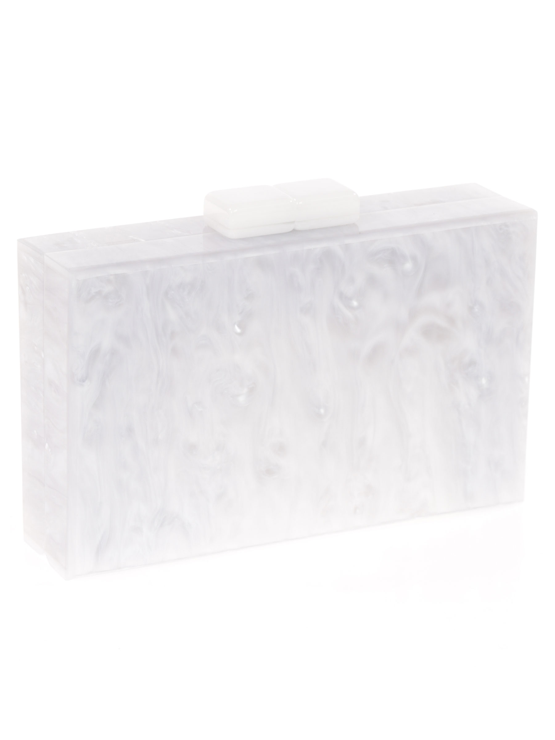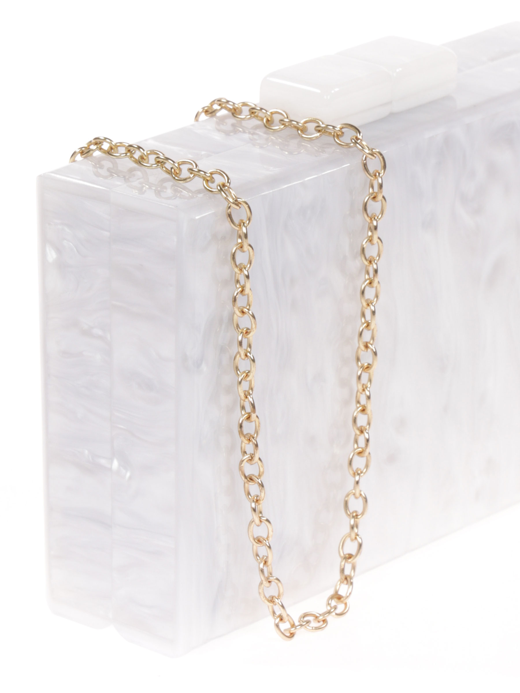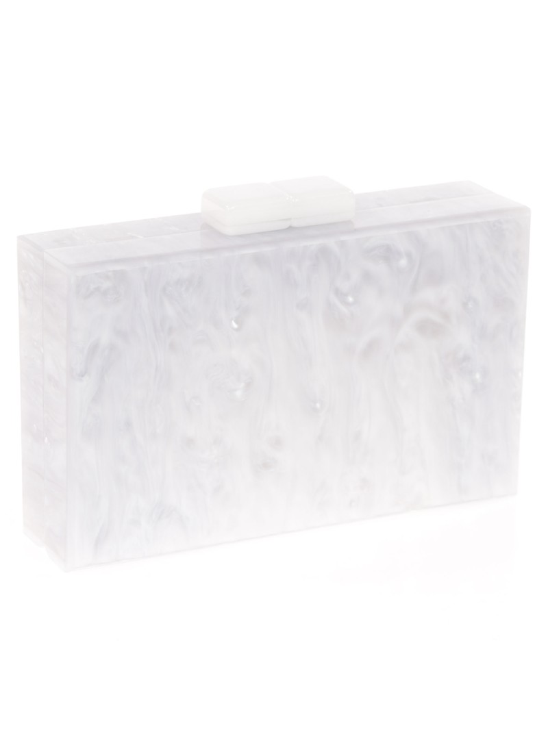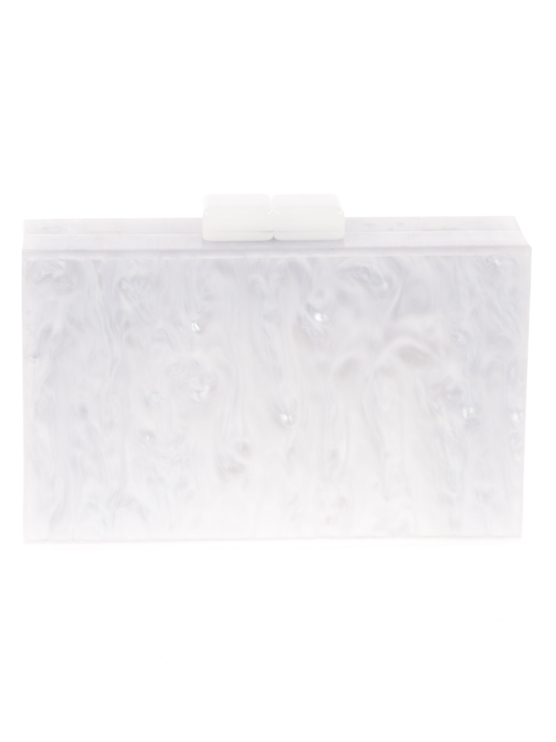 Bolso de fiesta. Material símil nácar. Asa de hombro en cadena. Forro sin bolsillo interior. Cierre mediante imán.