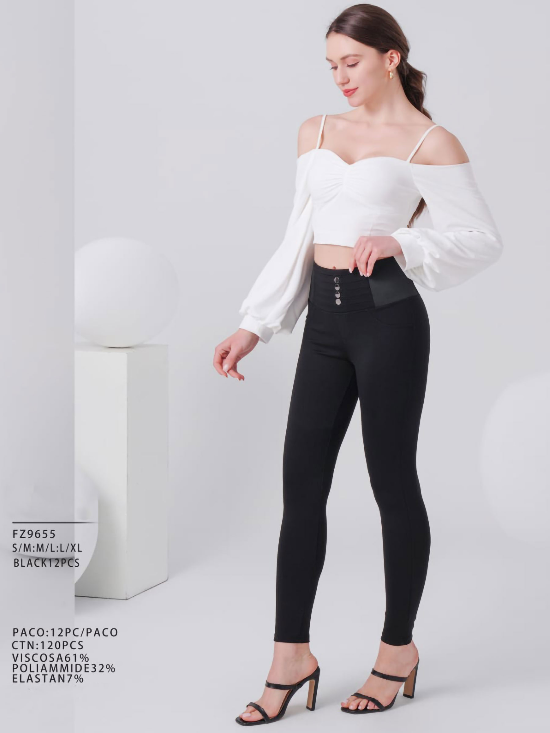 Detalles de pantalón skinny punto roma botones banda elástica LS-FZ9655