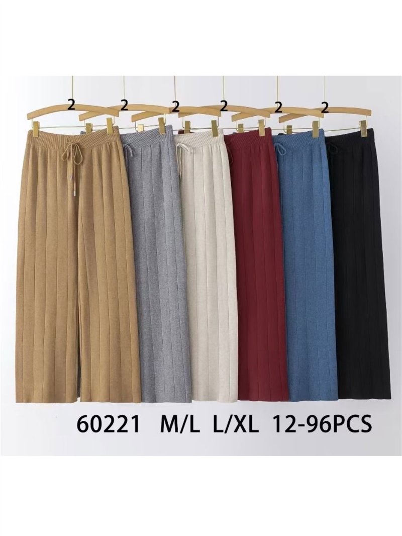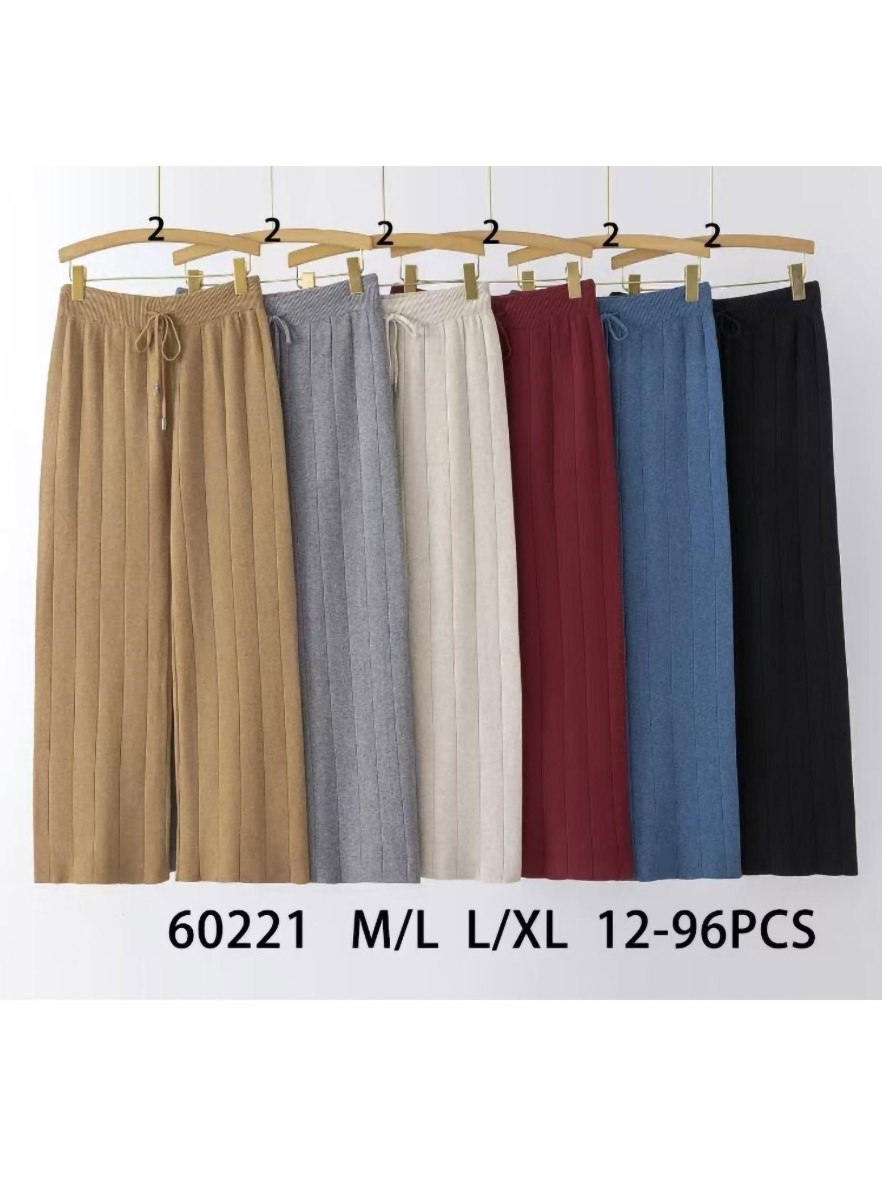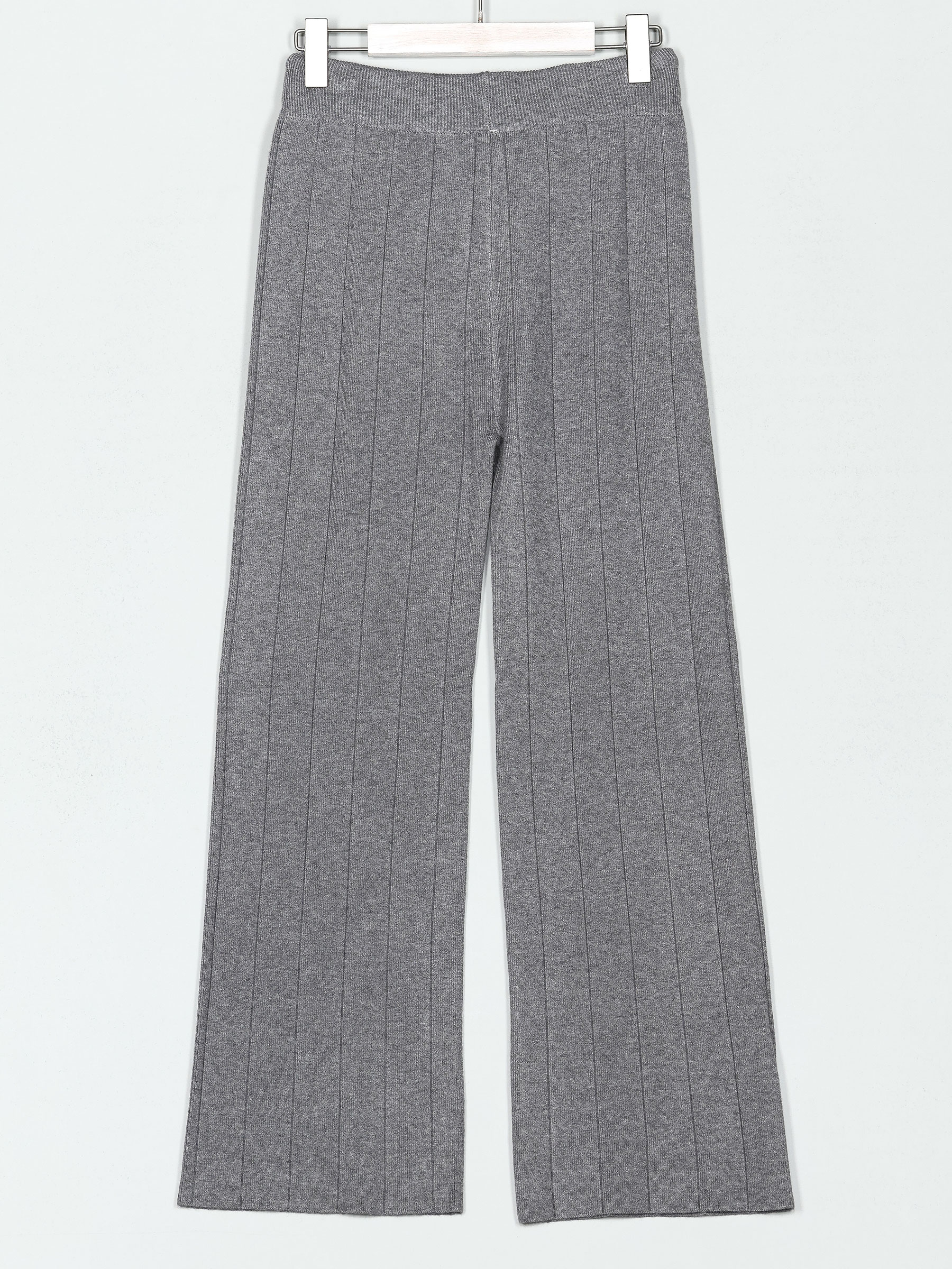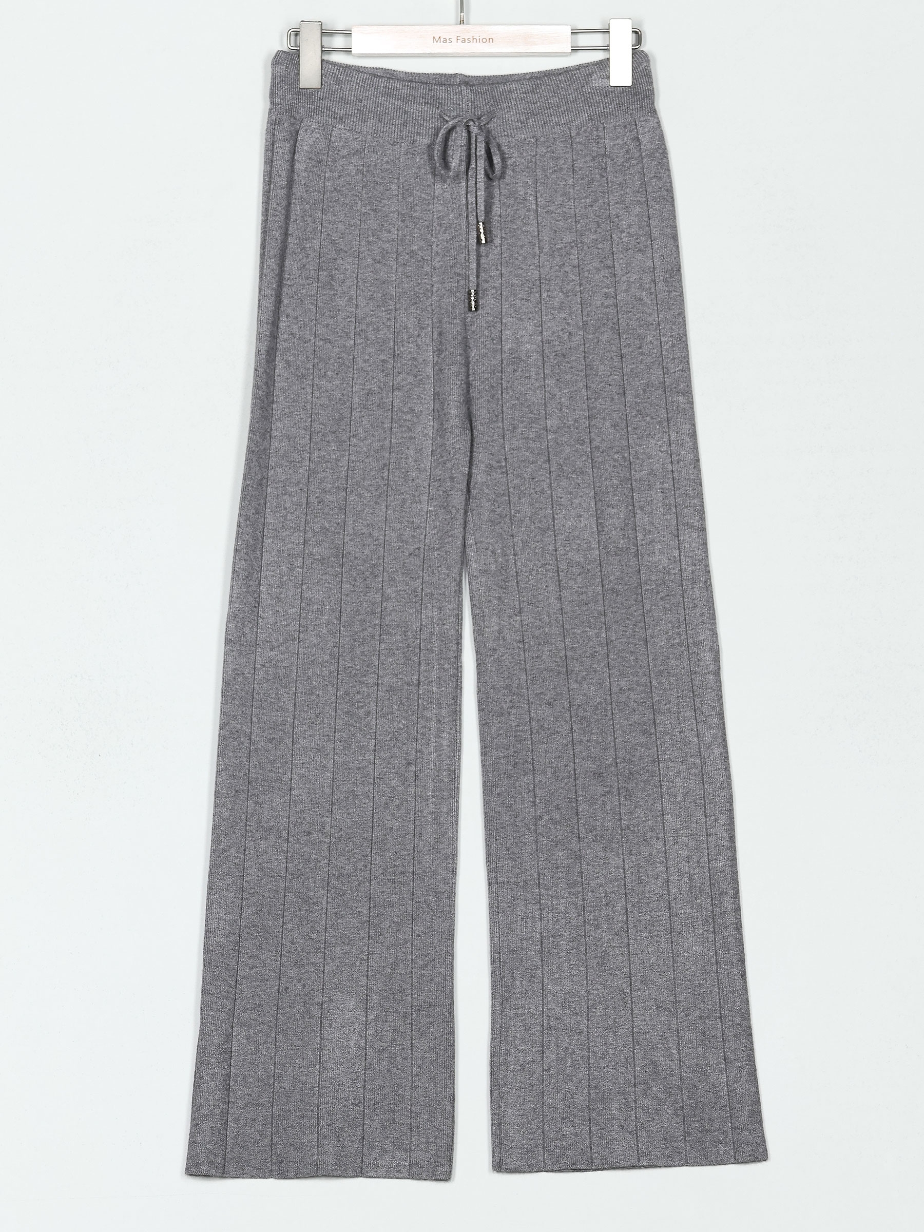 Pantalón recto de punto cálido. Tiro alto. Cintura elástica con cordones.