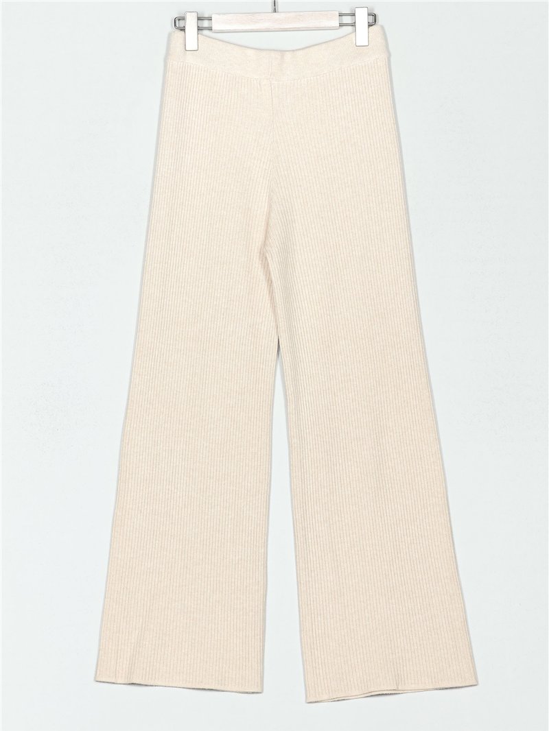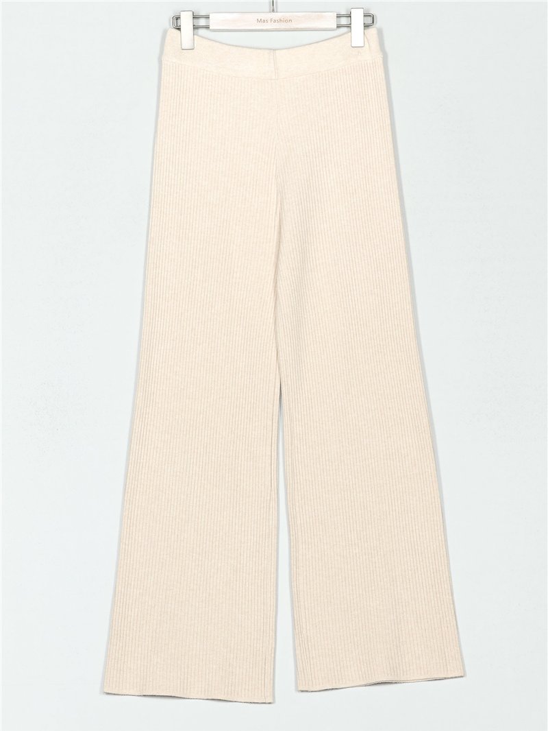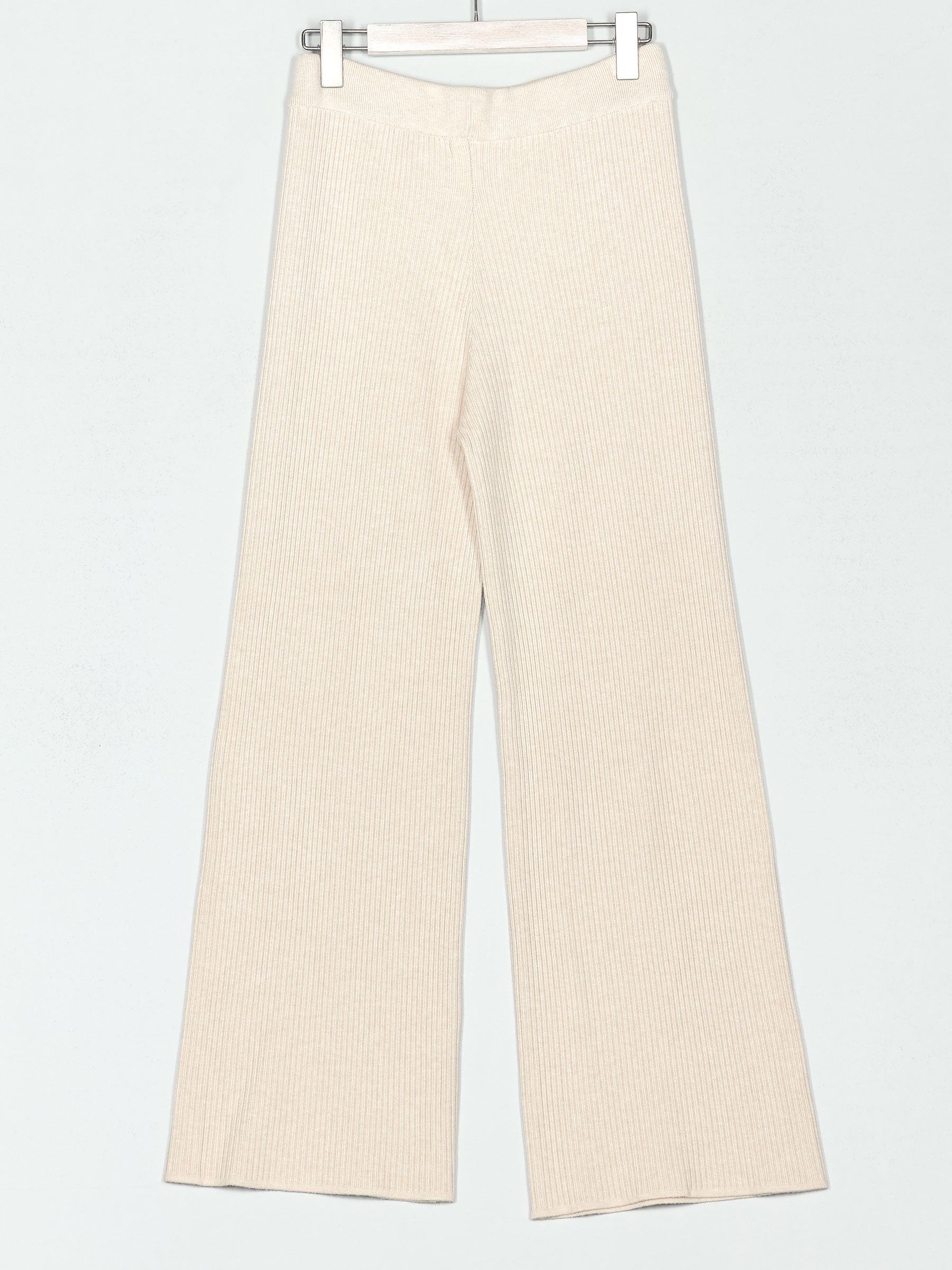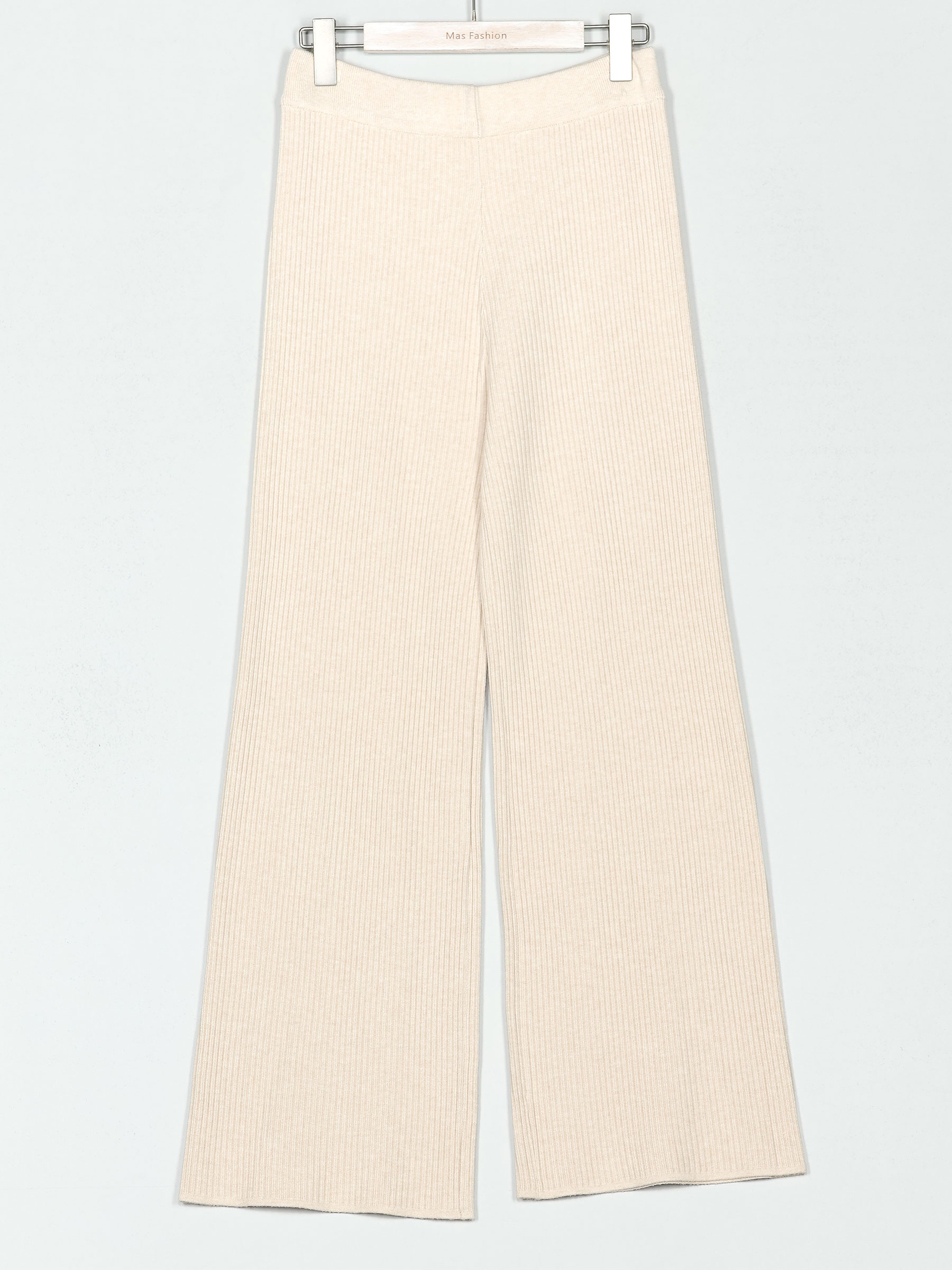 Pantalón recto de punto cálido. Tiro alto. Cintura elástica.