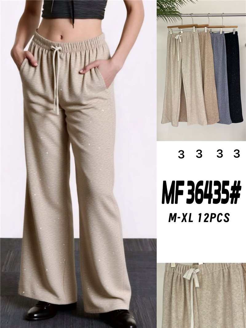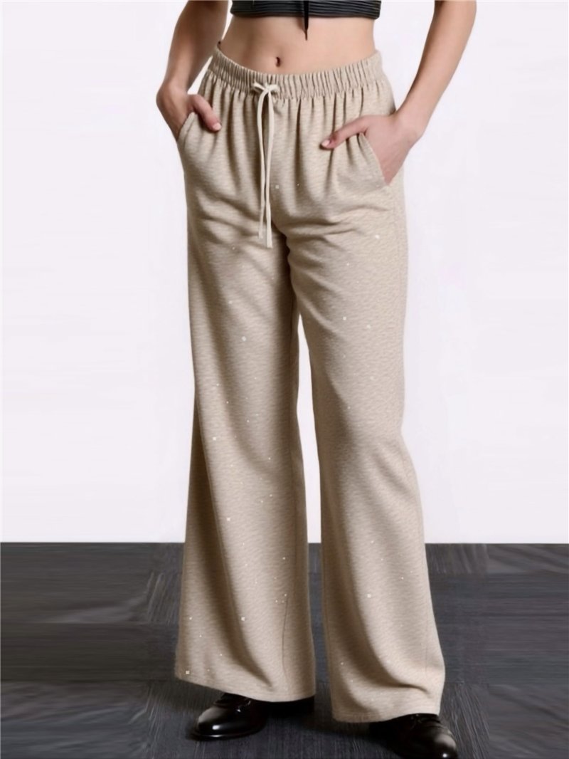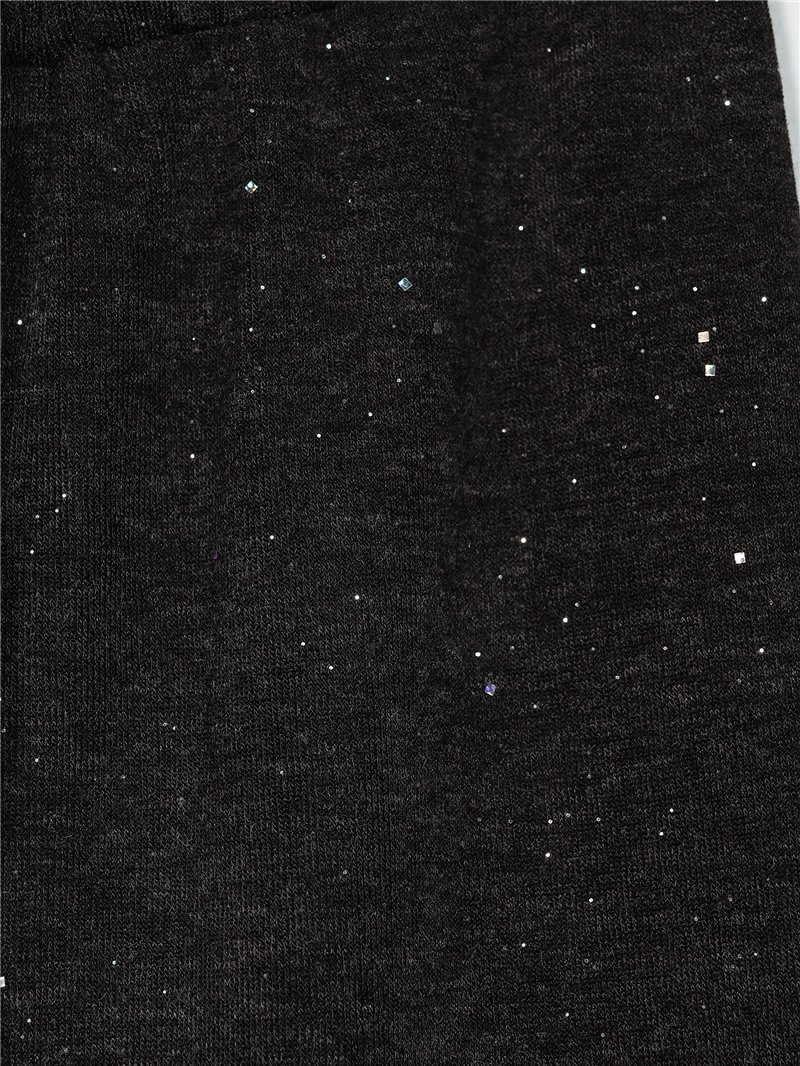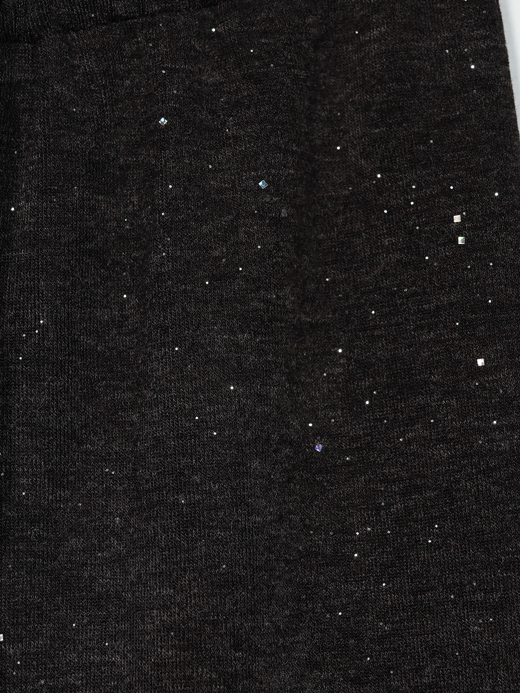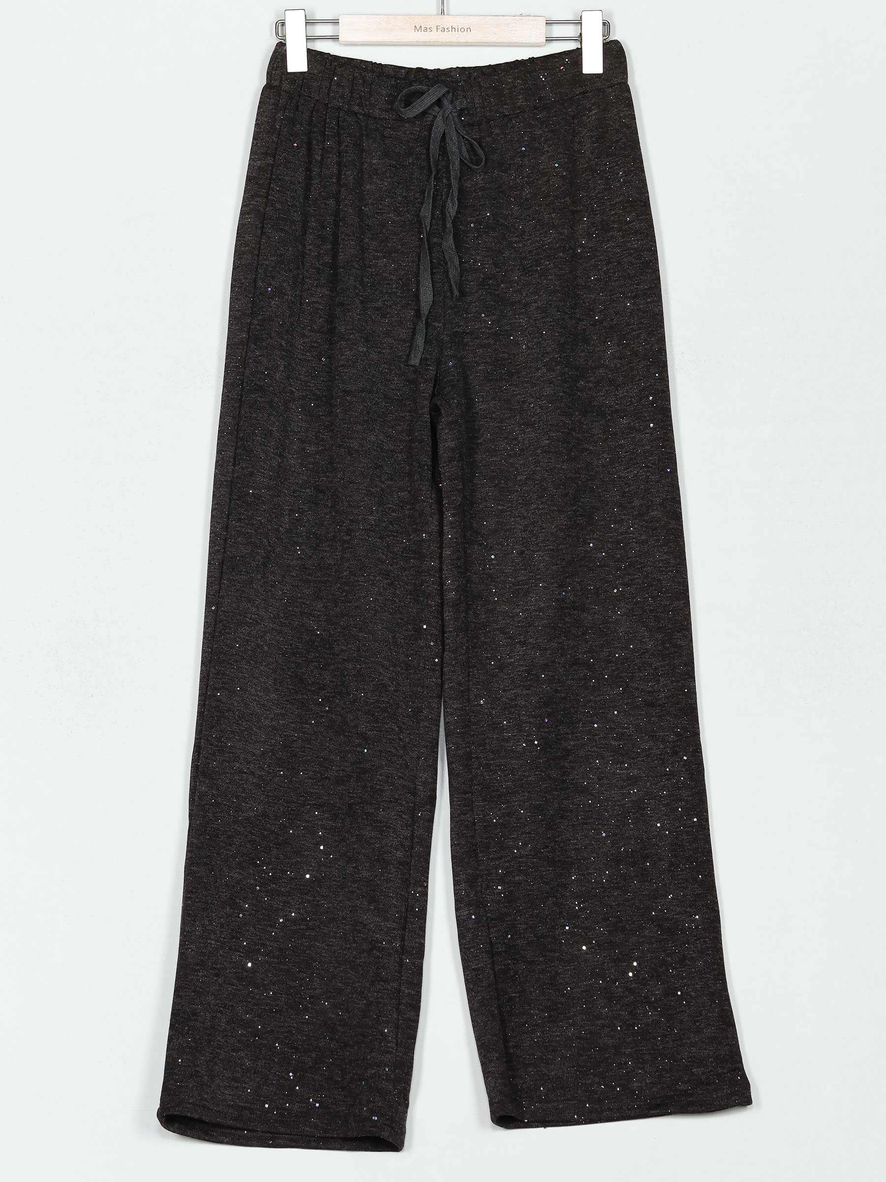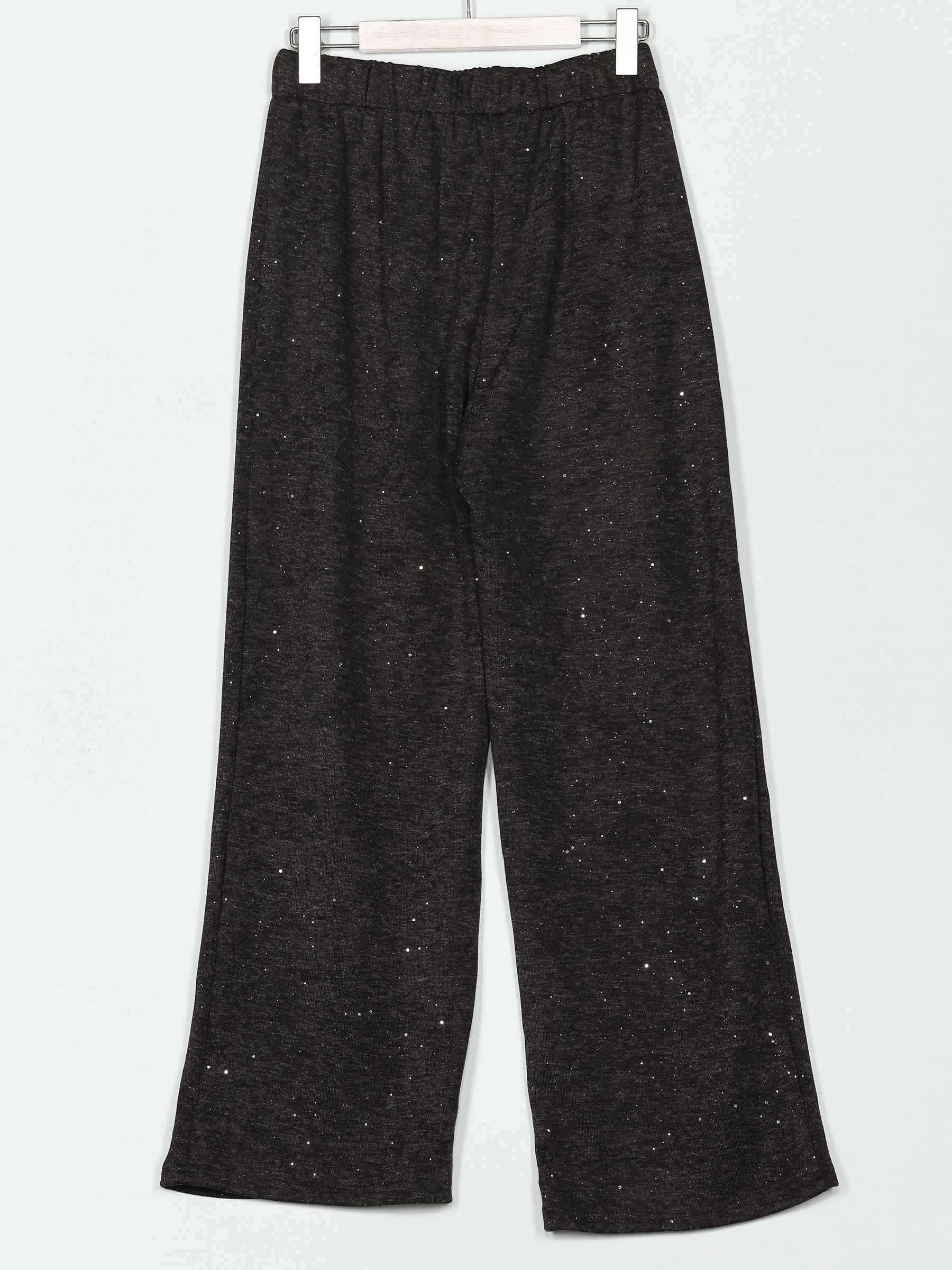 Pantalón recto de punto. Detalle glitter. Pernera ancha. Tiro alto. Cintura elástica.
